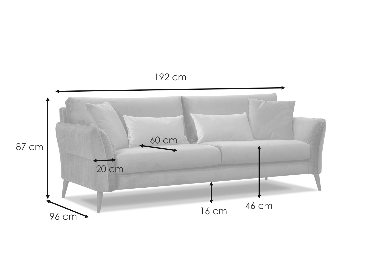 Coussins inclus : Le canapé est livré avec deux coussins décoratifs, ajoutant une touche de confort et de style supplémentaire. Design élégant et fonctionnel : Le canapé Figari est conçu pour offrir un confort optimal tout en ajoutant une touche d'élégance à votre intérieur. Finitions raffinées : Les accoudoirs sont ornés d’un passepoil et de plis décoratifs, ajoutant une esthétique soignée et distinctive. Pieds en bois élégants : Les pieds en bois confèrent une allure subtile et aérée, tout en facilitant le nettoyage sous le canapé grâce à un accès aisé. Velours délicat et changeant : Recouvert d’un tissu en velours 100% polyester, il est doux au toucher et offre un effet visuel unique, variant selon la lumière et la position du tissu. Adaptabilité : Disponible dans une large gamme de coloris, il s’intègre parfaitement à tous les styles de décoration intérieure. Entretien simplifié : La conception pratique et le choix des matériaux garantissent un nettoyage facile et une durabilité accrue. Il est recommandé de remettre en forme les assises, dossiers et coussins après chaque utilisation en les tapotant simplement à la main. En cas de petites taches, essuyez-les immédiatement avec un chiffon sec. Ne frottez pas avec un chiffon humide et ne lavez pas le tissu mais tamponnez légèrement. Pour un nettoyage en profondeur ou en cas de salissures importantes il est préférable de faire appel à un spécialiste. Un entretien adéquat est l'une des conditions principales de garantie. Le non-respect de ces conditions peut entraîner l'exclusion de la garantie. Dimensions : Longueur : 192m Profondeur : 96 cm Hauteur : 87 cm Hauteur d’assise : 46 cm Profondeur d’assise : 60 cm Epaisseur d’accoudoirs : 20 cm Hauteur de caisse : 79 cm Les dimensions données dans les fiches techniques et dans le catalogue sont à titre indicatif, nous vous remercions de bien vouloir tenir compte d’une tolérance de +/- 4cm sur chaque élément. Description technique : Structure de la carcasse : Panneaux de particules, bois massif et panneaux de fibres Assises : Assise en mousse polyuréthane de densité N 35 kg/m3 + ouate 150 g/m2 Dossier : Coussins composé de 50% flocons de mousse polyuréthane + 50% en fibres de silicone Suspension : (Assise) ressort zig-zag Pieds : Bois Informations logistiques : Le produit se compose d’un colis. Colis 1 : 186 cm x 72 cm x 111 cm (LxHxP) 53 kg