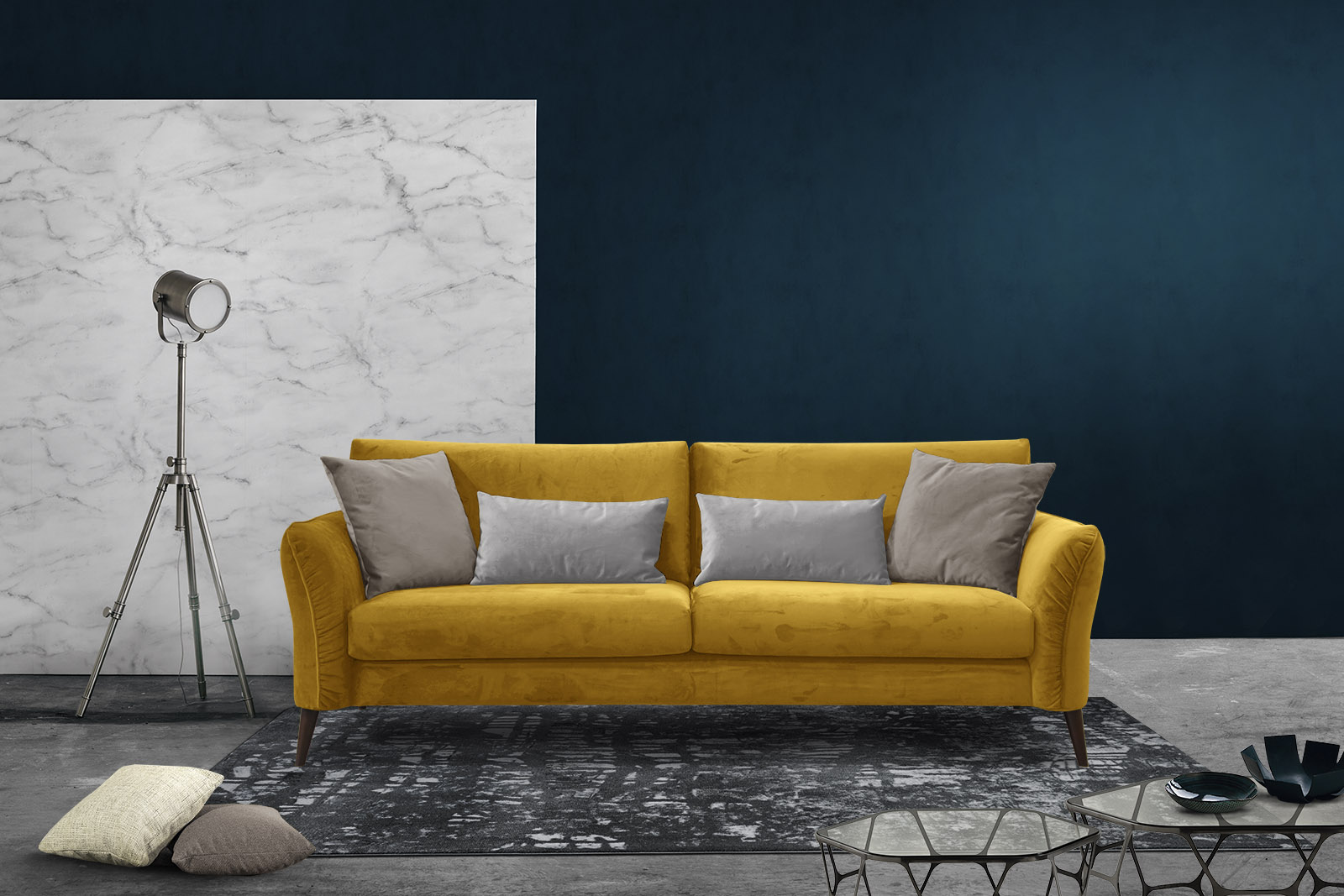 Canapé droit 3 places avec coussins tissu jaune - FIGARI