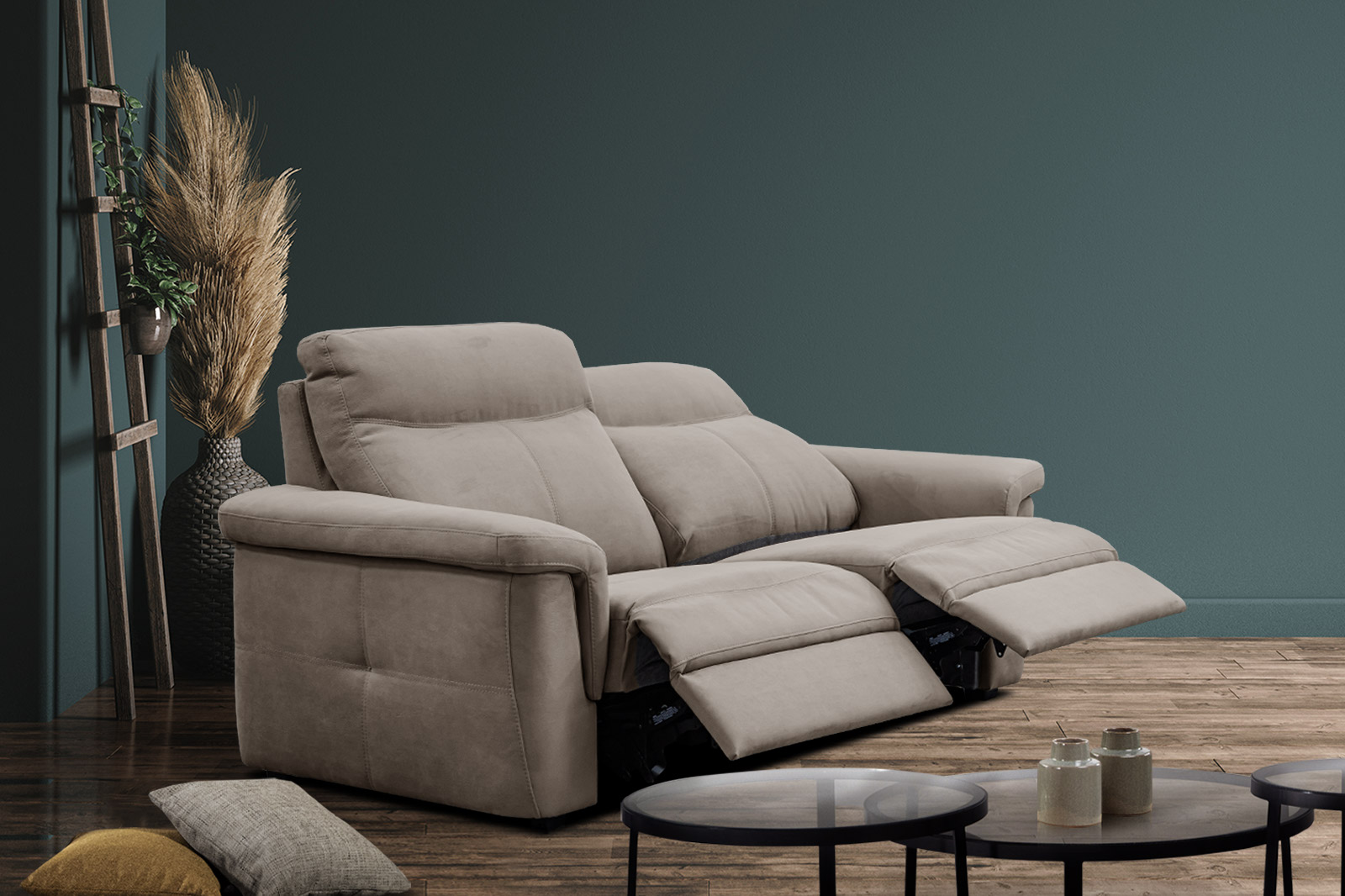Canapé droit 3 places tissu taupe avec relax électrique - JONES