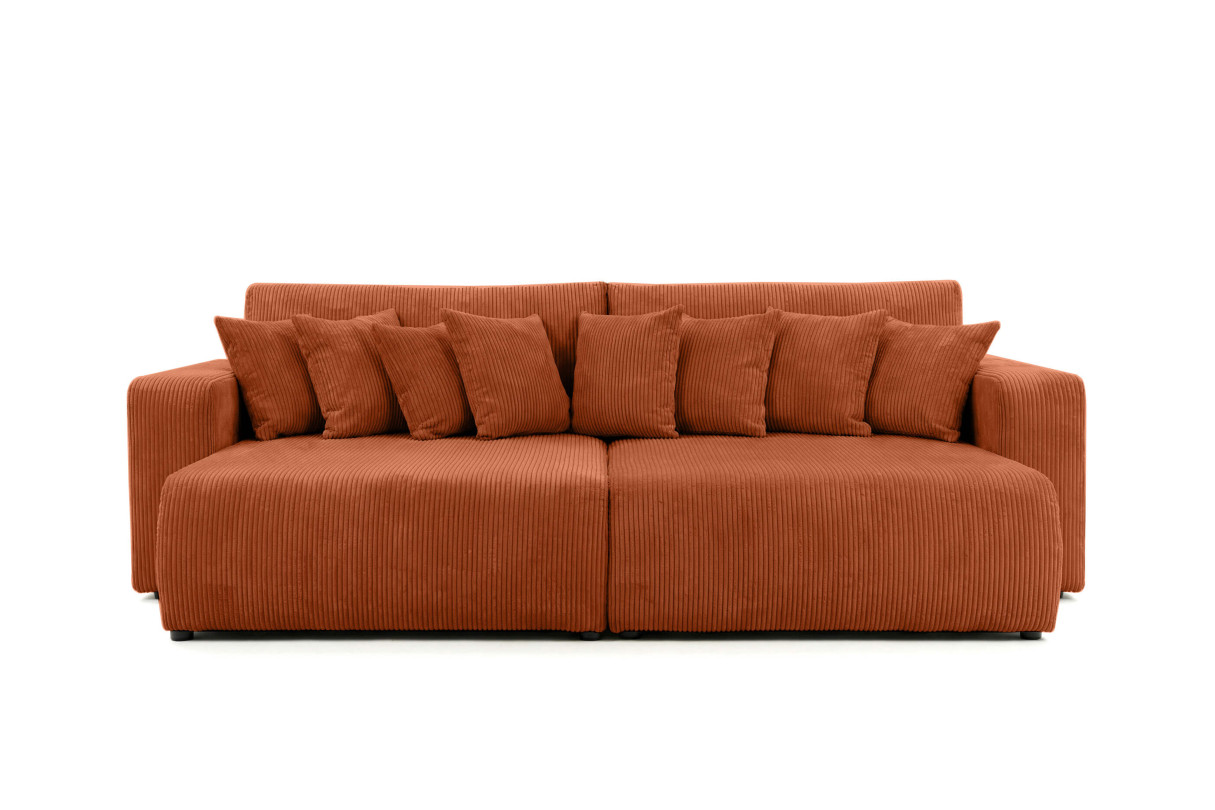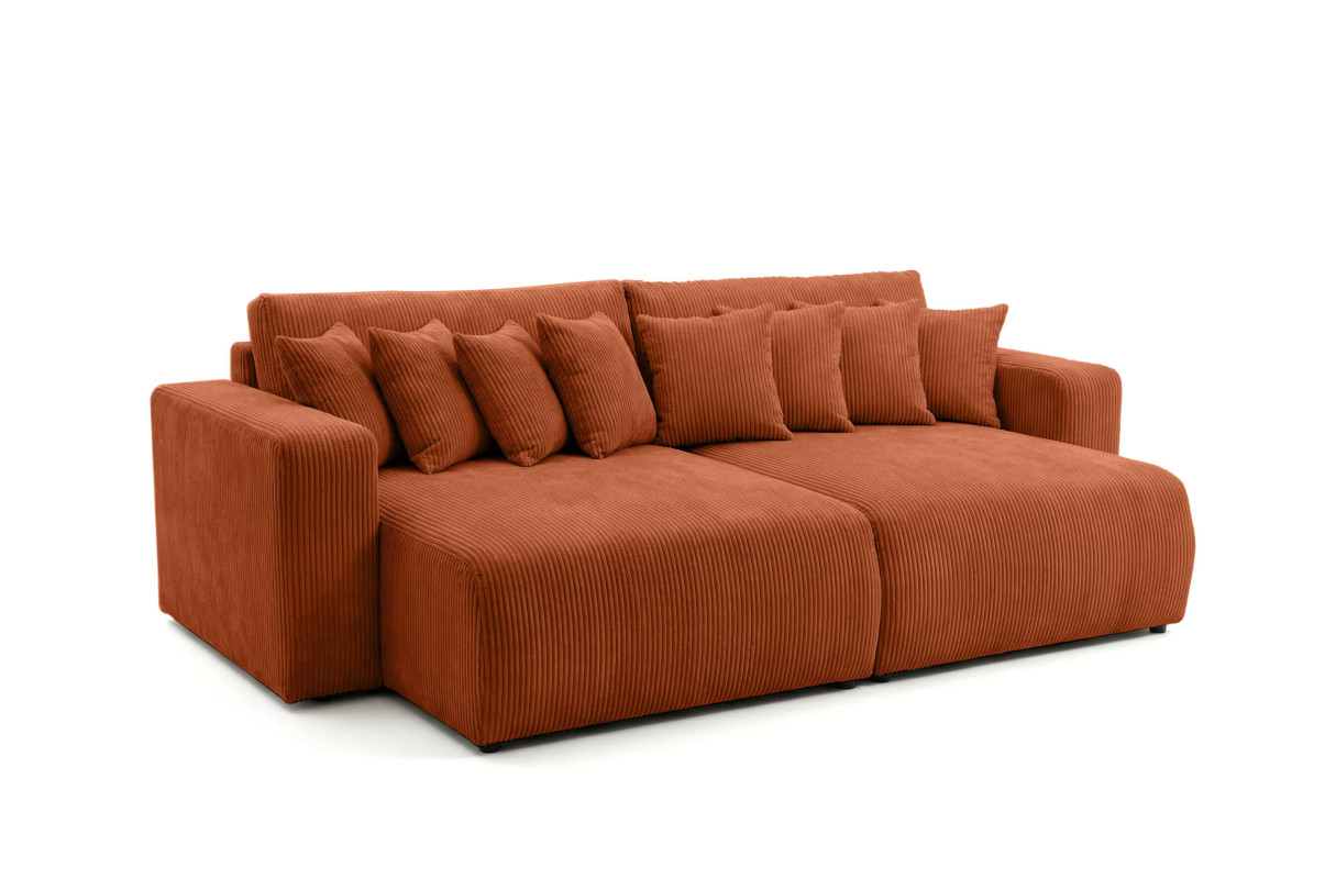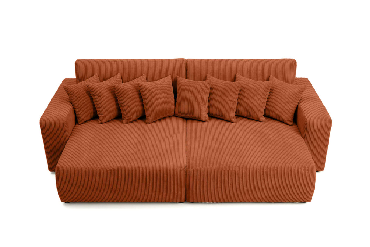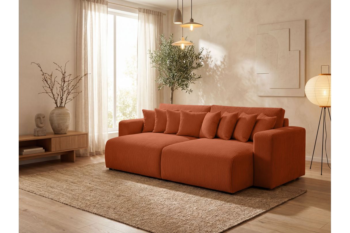 Canapé droit 4 places JADE double méridienne et assise profonde en velours côtelé - Terracotta