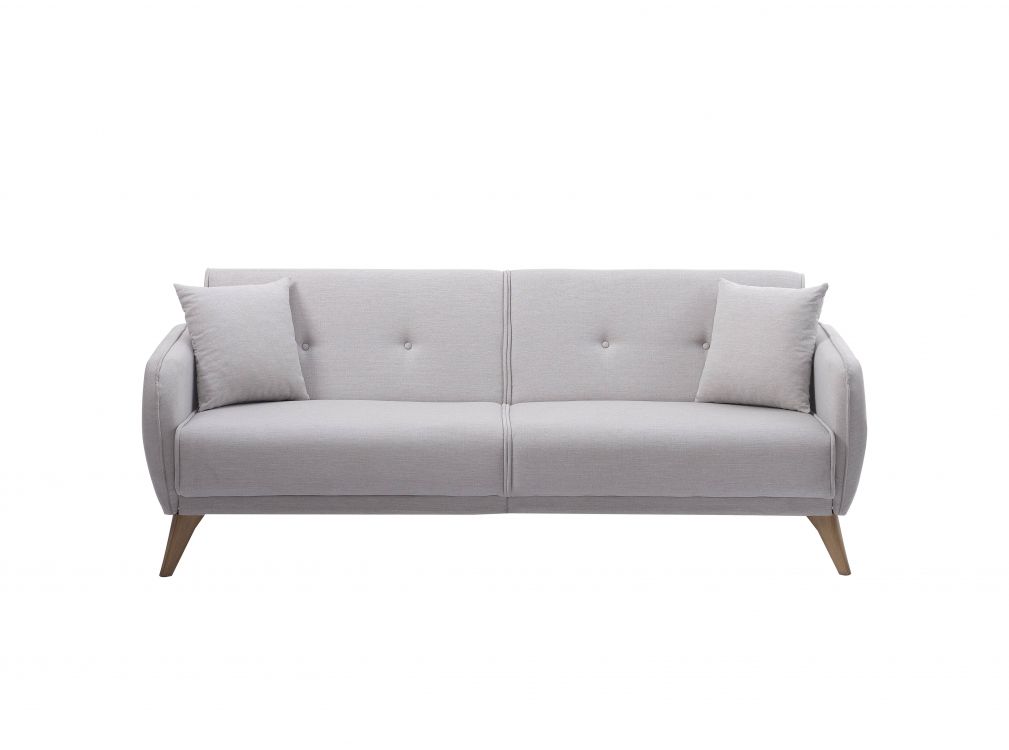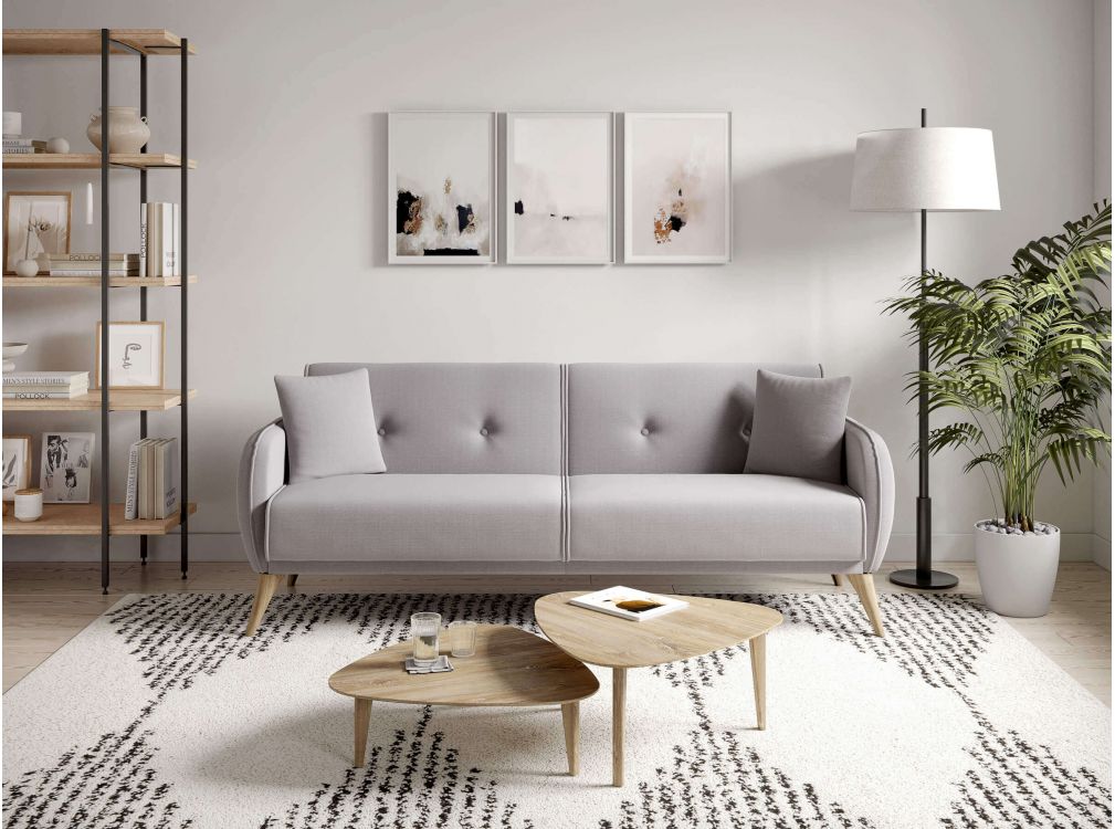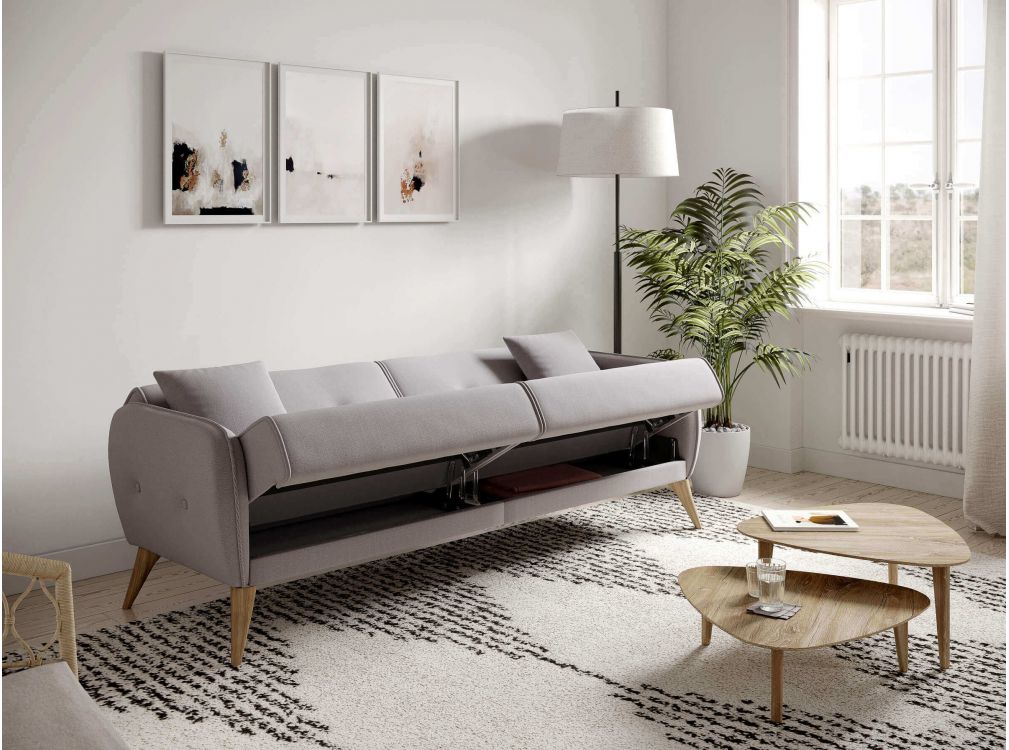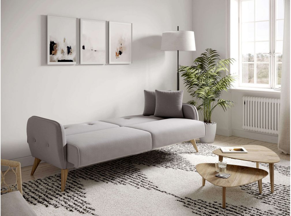 Canapé droit BORA 3 places convertible en tissu pieds bois clair - Gris clair