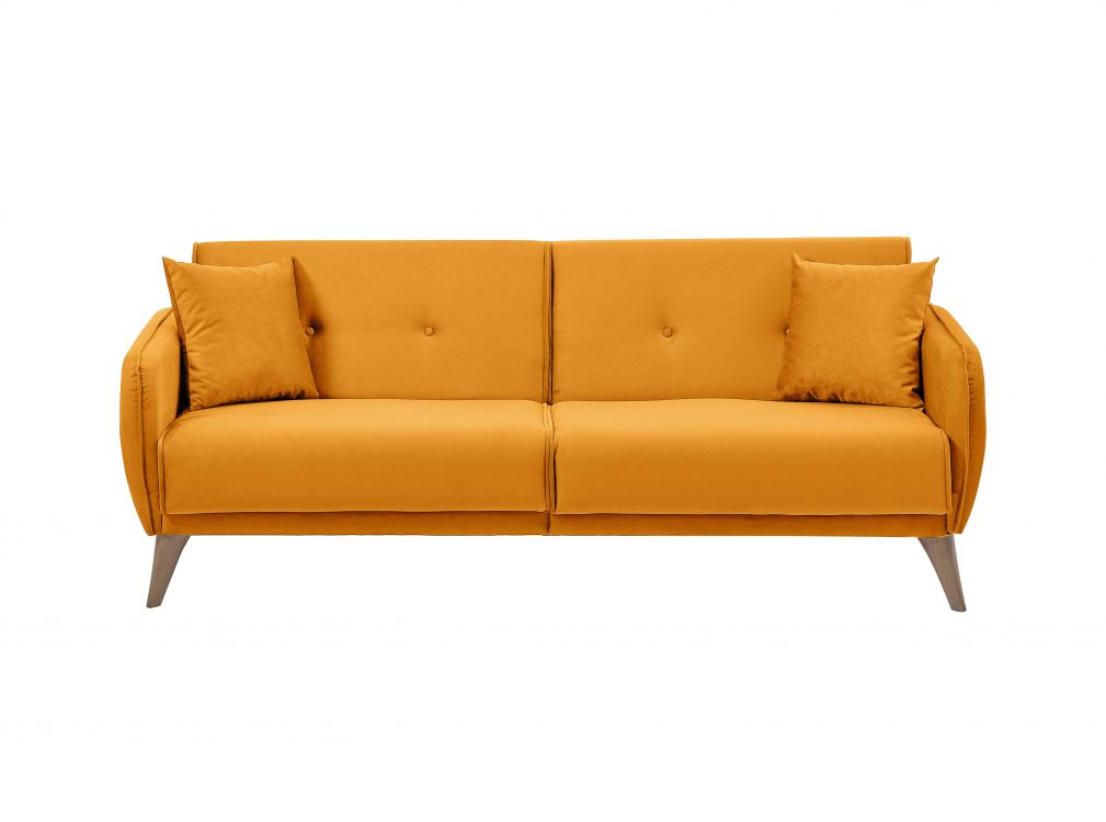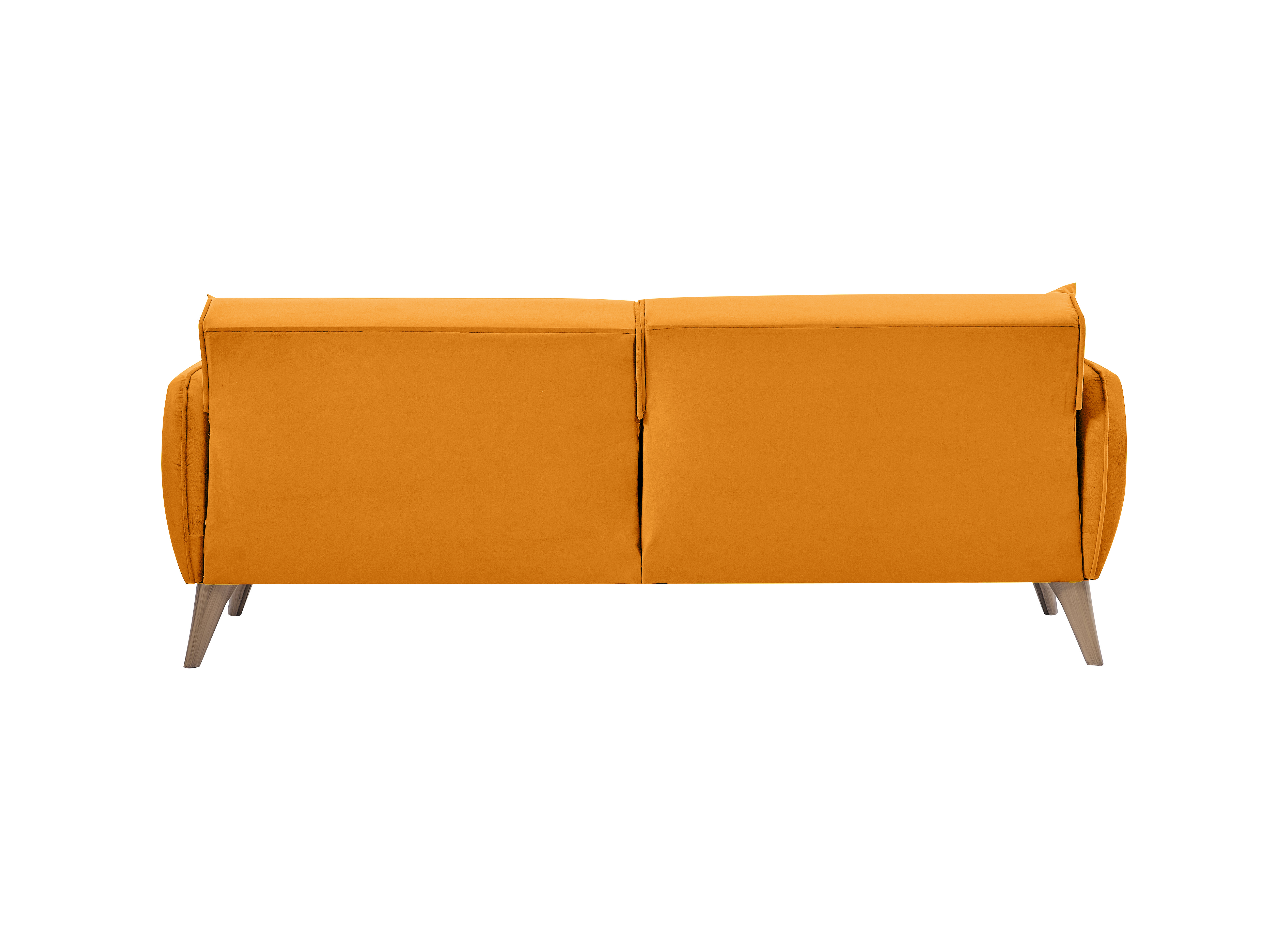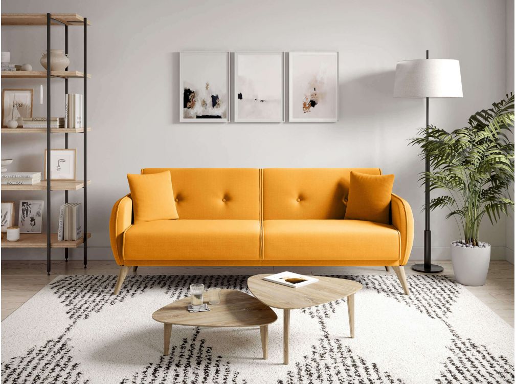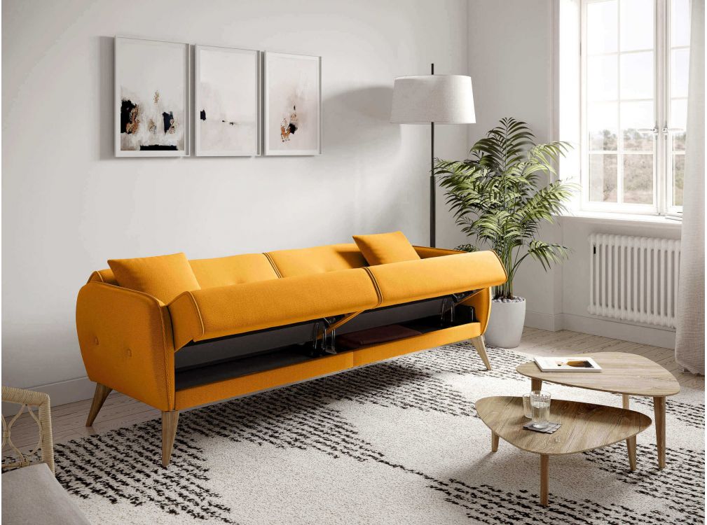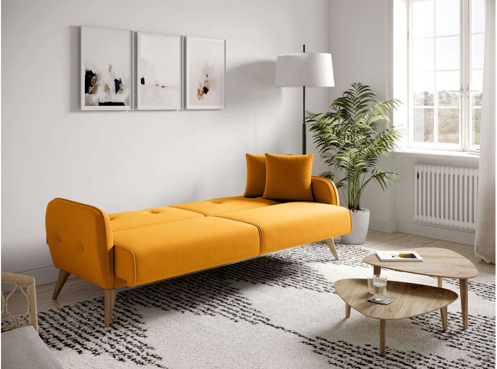 Canapé droit BORA 3 places convertible en tissu pieds bois clair - Jaune