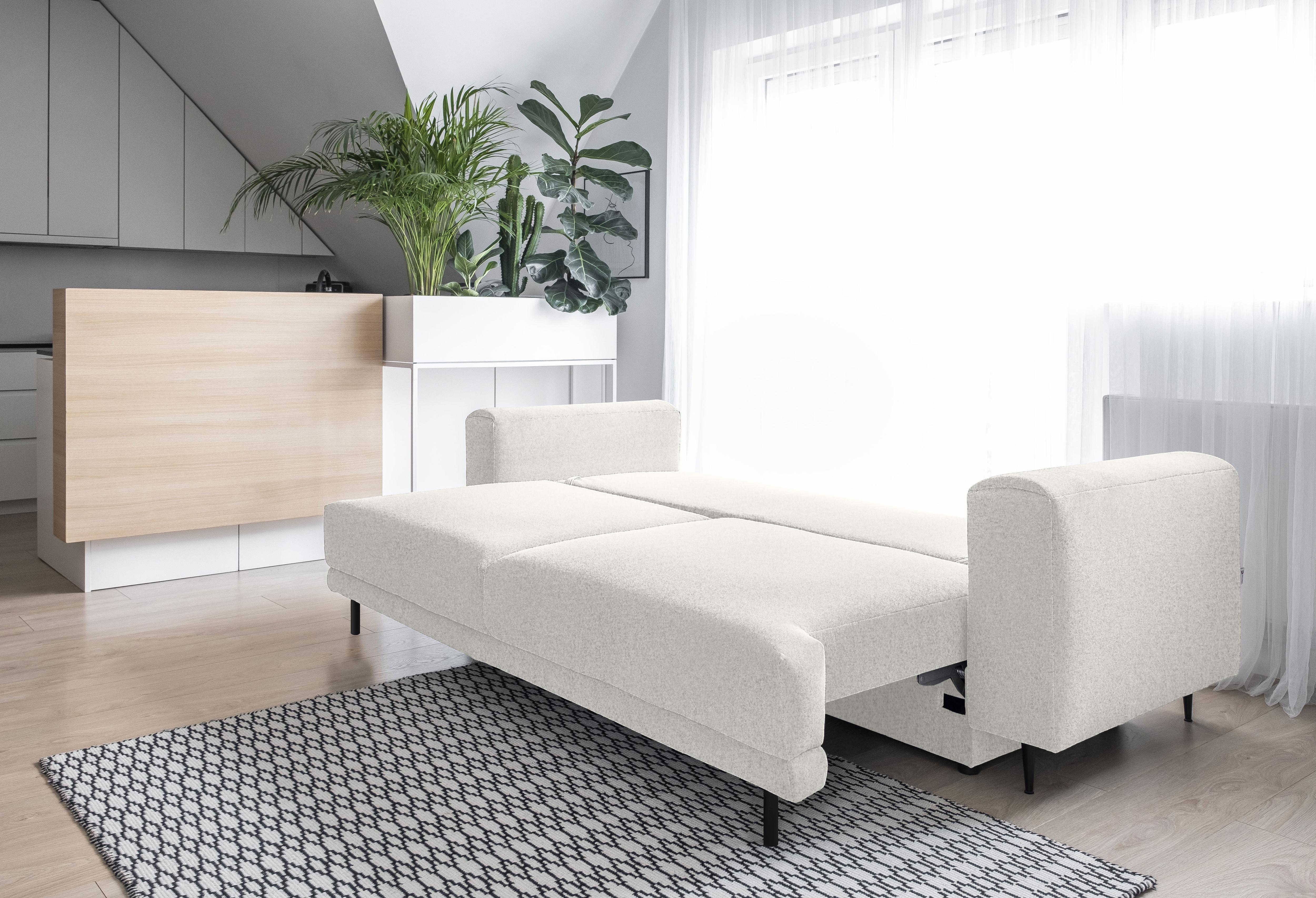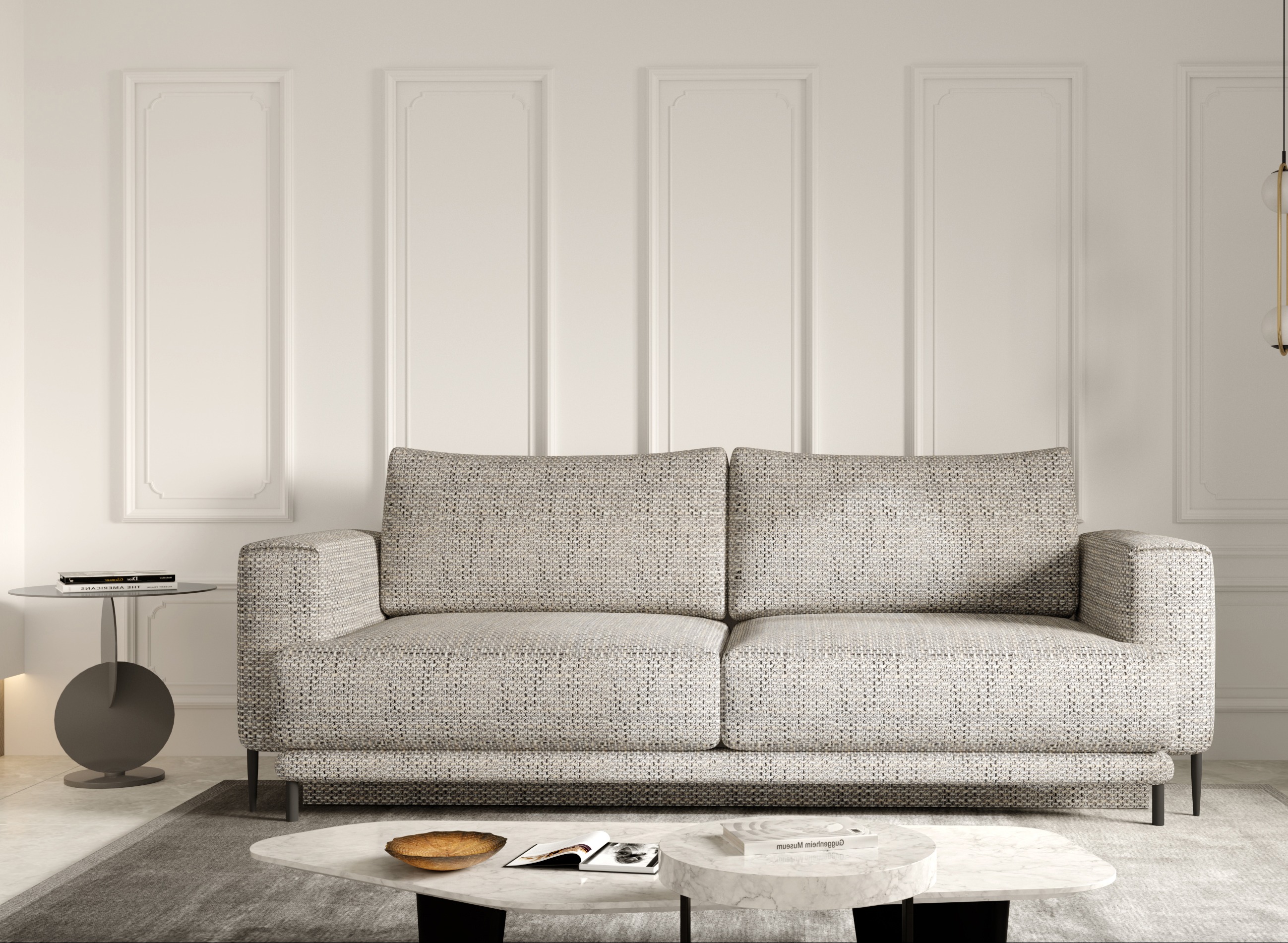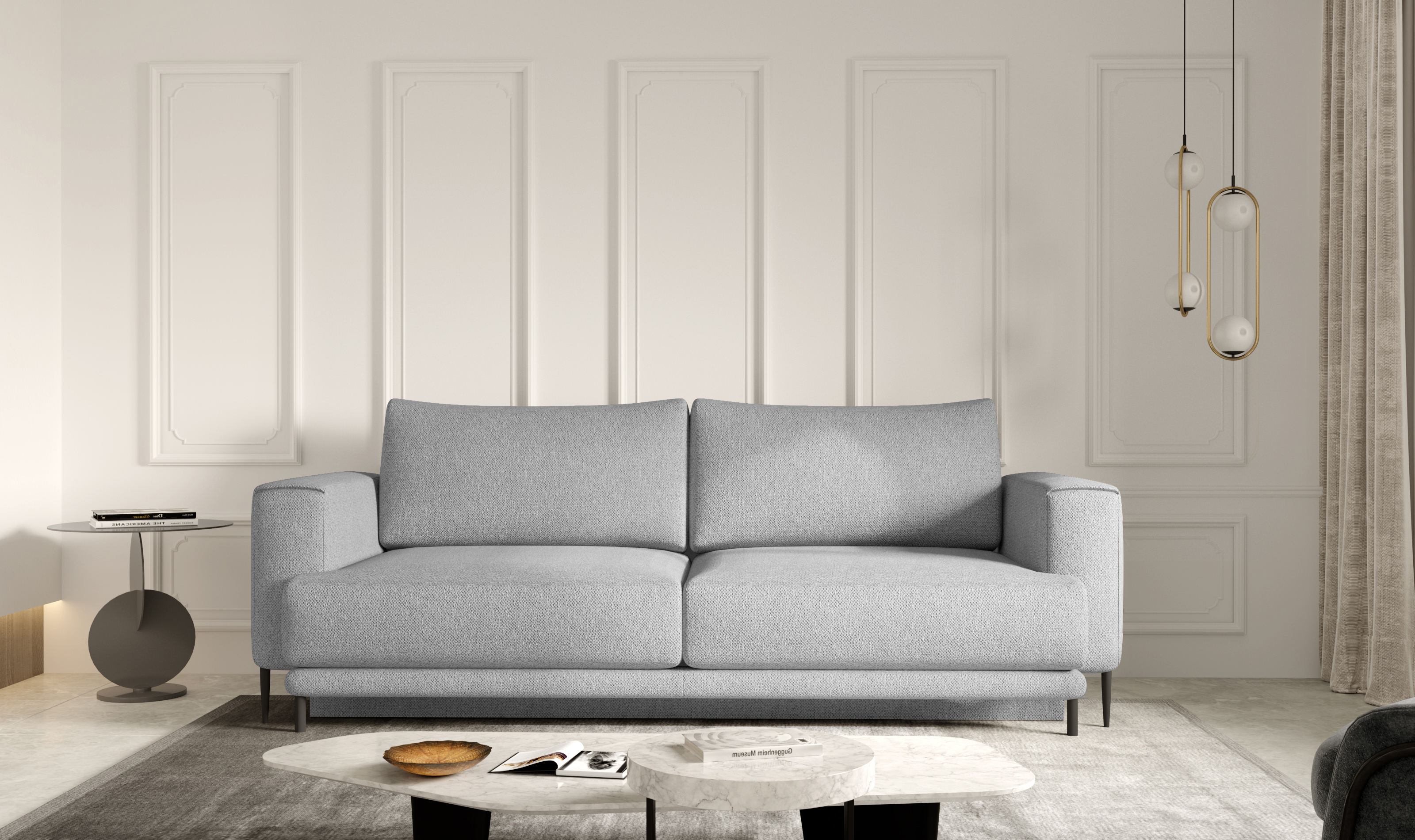Offrez à votre salon une pièce maîtresse au design raffiné avec le canapé Davina. Son allure moderne et intemporelle, associée à un confort exceptionnel, en fait un choix idéal pour tous ceux qui recherchent à la fois style et fonctionnalité. Son revêtement en tissu haut de gamme apporte une douceur agréable au toucher et une résistance à l’usage quotidien, tout en sublimant votre intérieur. Un confort optimal et une polyvalence remarquable Avec ses dimensions généreuses (L 248 x P 84 x H 95 cm), le canapé Davina vous assure un confort optimal de jour comme de nuit. Grâce à son mécanisme de conversion DL, il se transforme en un lit spacieux (215 x 145 cm) en quelques secondes, idéal pour accueillir vos invités. Pensé pour le quotidien, ce canapé est aussi pratique qu’élégant. Son coffre de rangement intégré permet d’organiser aisément couettes, oreillers et autres accessoires, gardant ainsi votre espace ordonné et fonctionnel. Son assise et son dossier sont garnis d’une mousse HR et T25, garantissant un confort durable et évitant toute déformation au fil du temps. Caractéristiques techniques Modèle : Canapé droit 4 places – Convertible Coloris : Plusieurs coloris disponibles Dimensions du canapé : L 248 x P 84 x H 95 cm Profondeur d'assise : 53 cm (jusqu'à 79 cm avec coussins) Hauteur d'assise : 43 cm Hauteur accoudoirs : 68 cm Largeur accoudoirs : 24 cm Surface de couchage : 215 x 145 cm Hauteur des pieds : 12 cm Poids total : 98 kg Matériaux et finitions Revêtement : ✔ Tissu premium (100% polyester, 285 g/m²) ✔ Résistant à l’abrasion et aux taches ✔ Facile à entretenir : coussins amovibles et déhoussables ✔ Lavable en machine à froid (30°) ou à la main Structure : Bois massif et panneau de particules Densité et confort : ✔ Assise : Mousse polyester 25 kg/m³ HR ✔ Dossier et accoudoirs : 25 kg/m³ HR ✔ Rembourrage : Ressorts ondulés et mousse hautement élastique Pieds : Métal noir élégant et robuste Fabrication européenne – Garantie 5 ans Colisage ✔ Colis 1 : 212 x 84 x 64 cm – 76 kg ✔ Colis 2 : 84 x 55 x 50 cm – 22 kg Le canapé Davina allie esthétisme et ingéniosité pour vous offrir un espace de vie à la fois élégant, confortable et fonctionnel. Son design soigné et ses matériaux de qualité en font un choix incontournable pour sublimer votre intérieur. Option(s) sélectionnée(s) : - Couleur : Gris clair