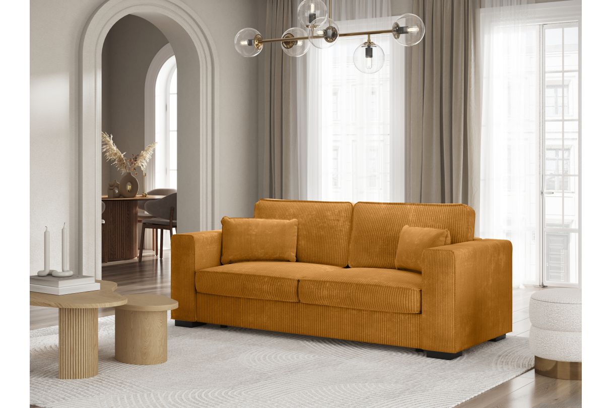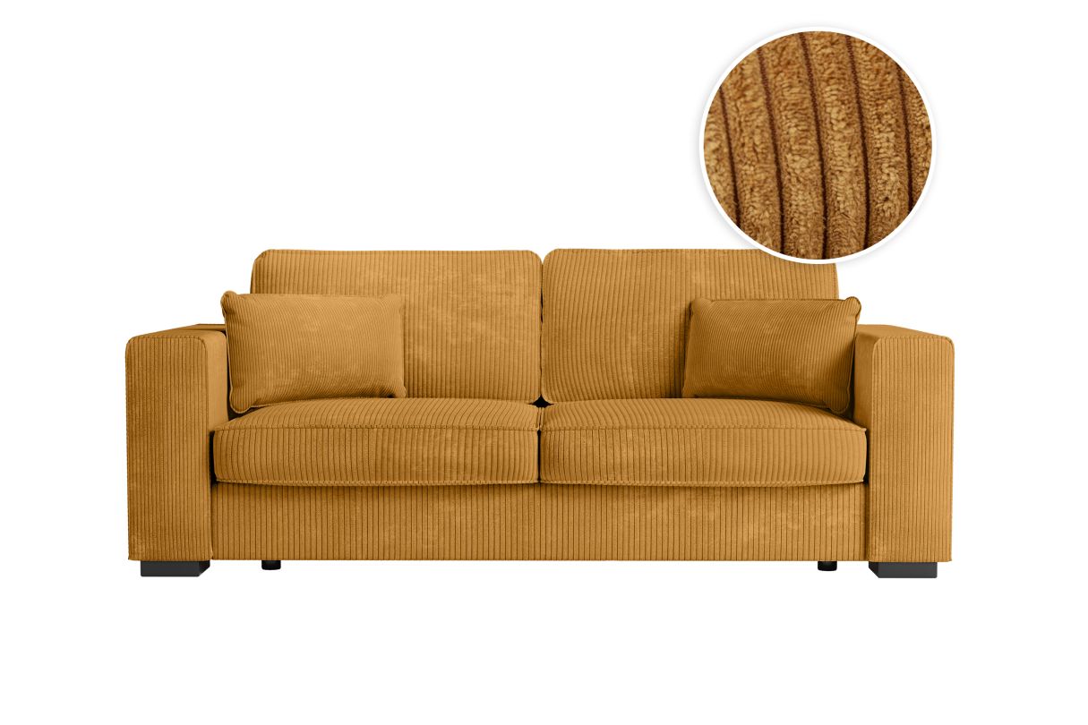 Canapé droit fixe 3 places BELAMI en velours côtelé - Jaune