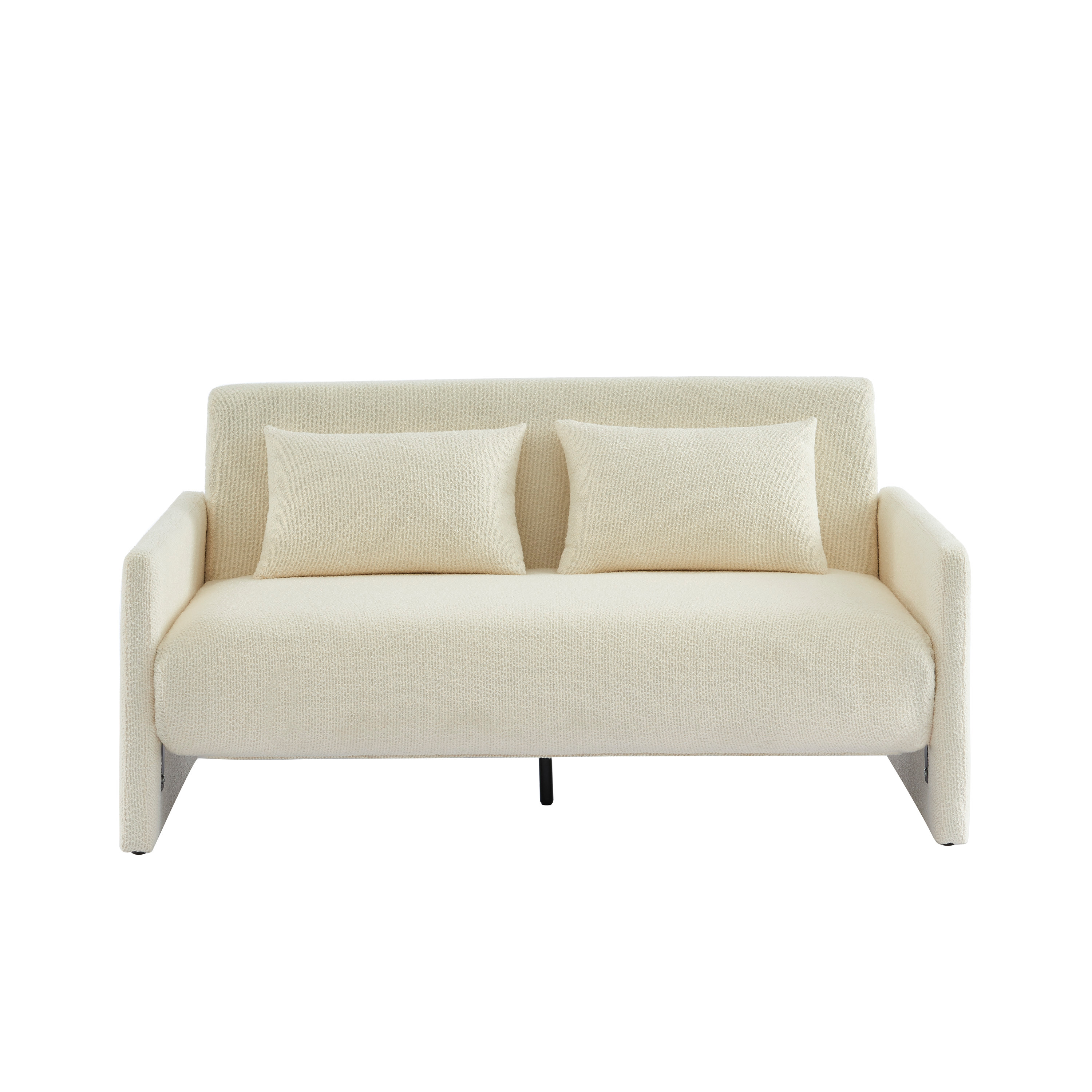 Canapé droit JADE en tissu bouclette beige convertible 3 places