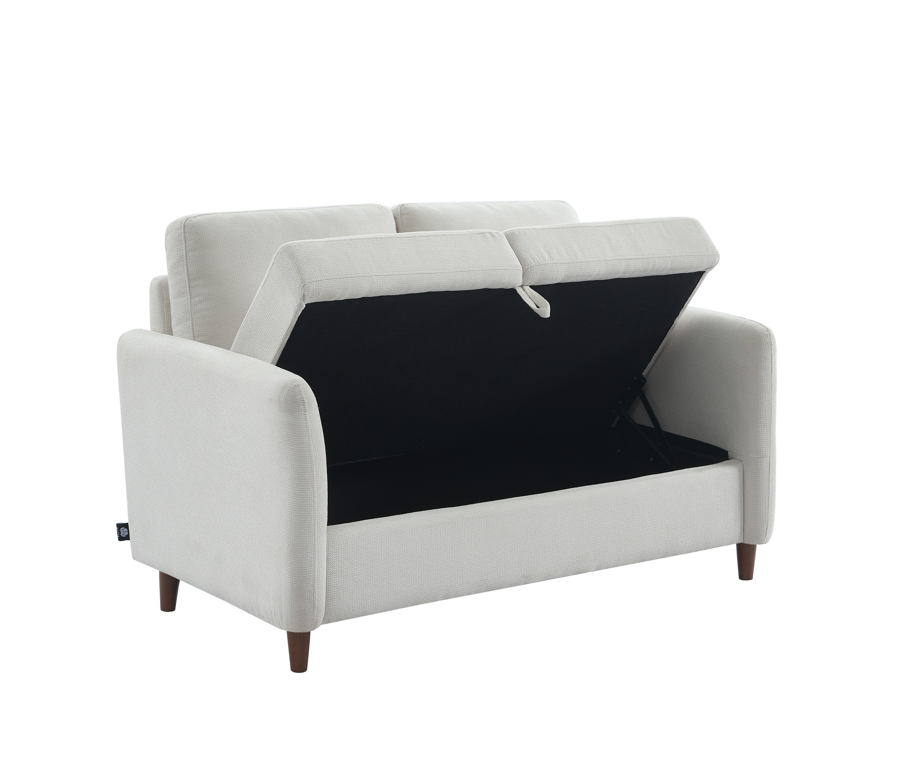 Canapé droit LUCIEN fixe avec coffre de rangement tissu beige 2 places