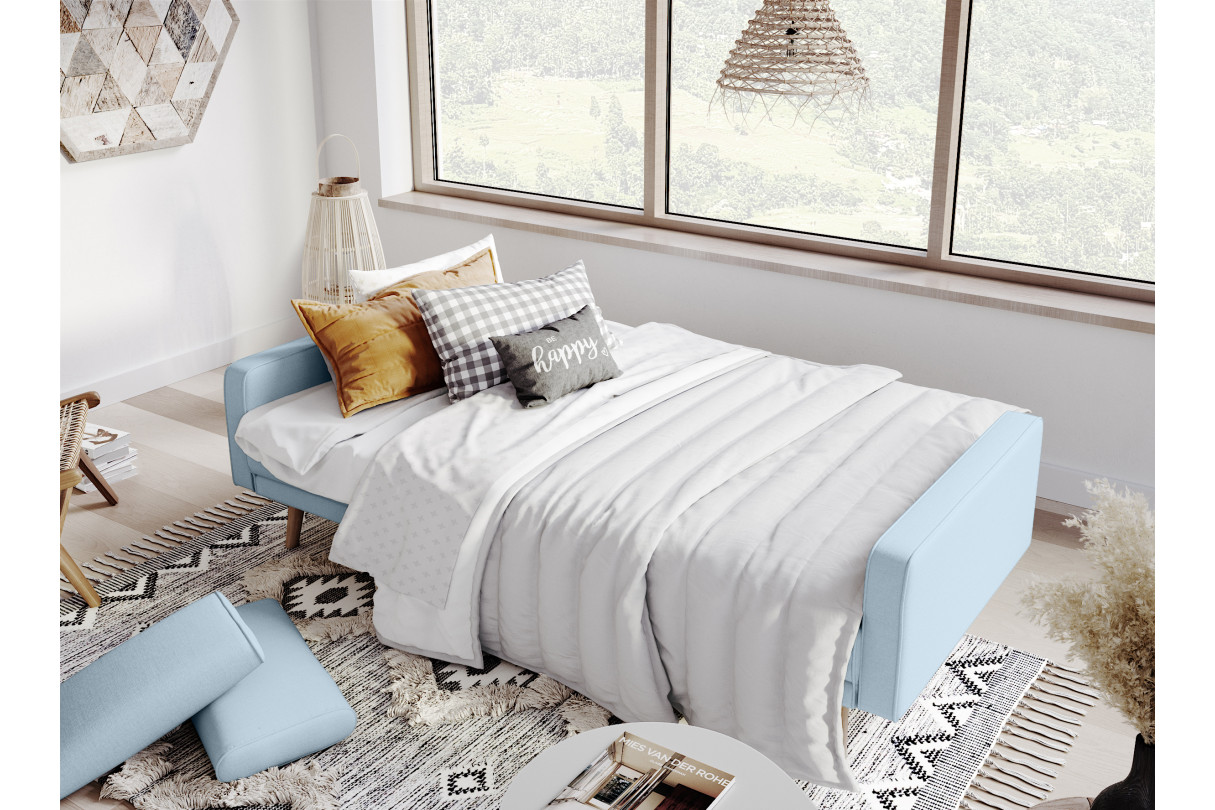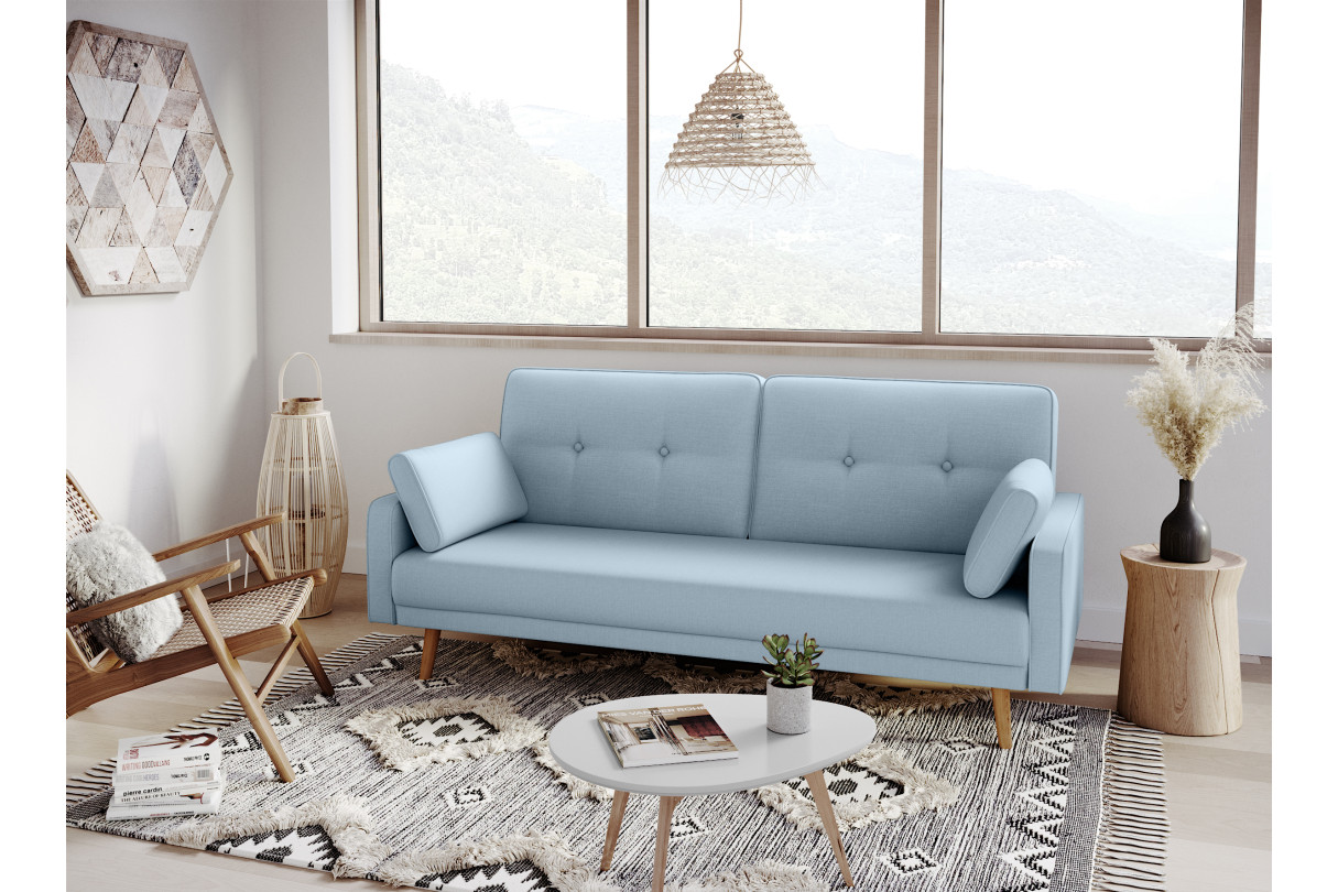 Donnez du style à votre salon avec ce canapé scandinave aux pieds en bois massifs évasés et ses lignes épurées, parfaitement symétriques. Ce canapé convertible au design scandinave s'adapte à tous les styles d'intérieurs.