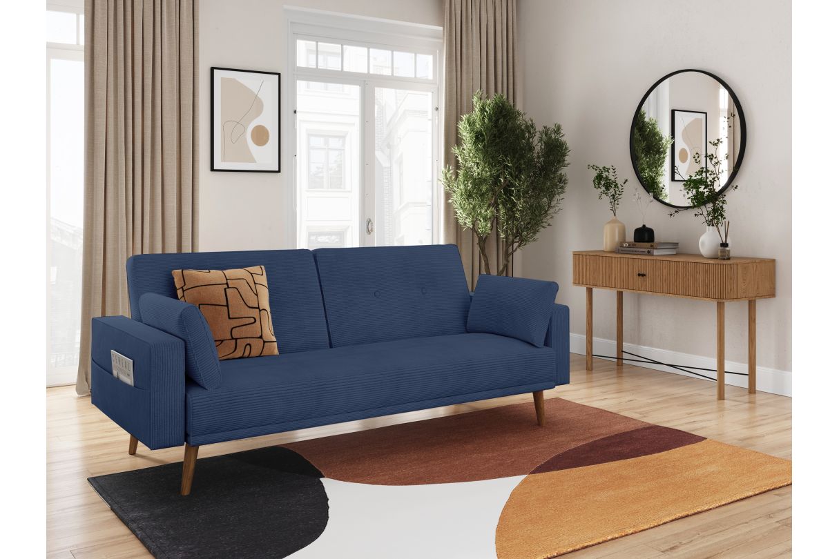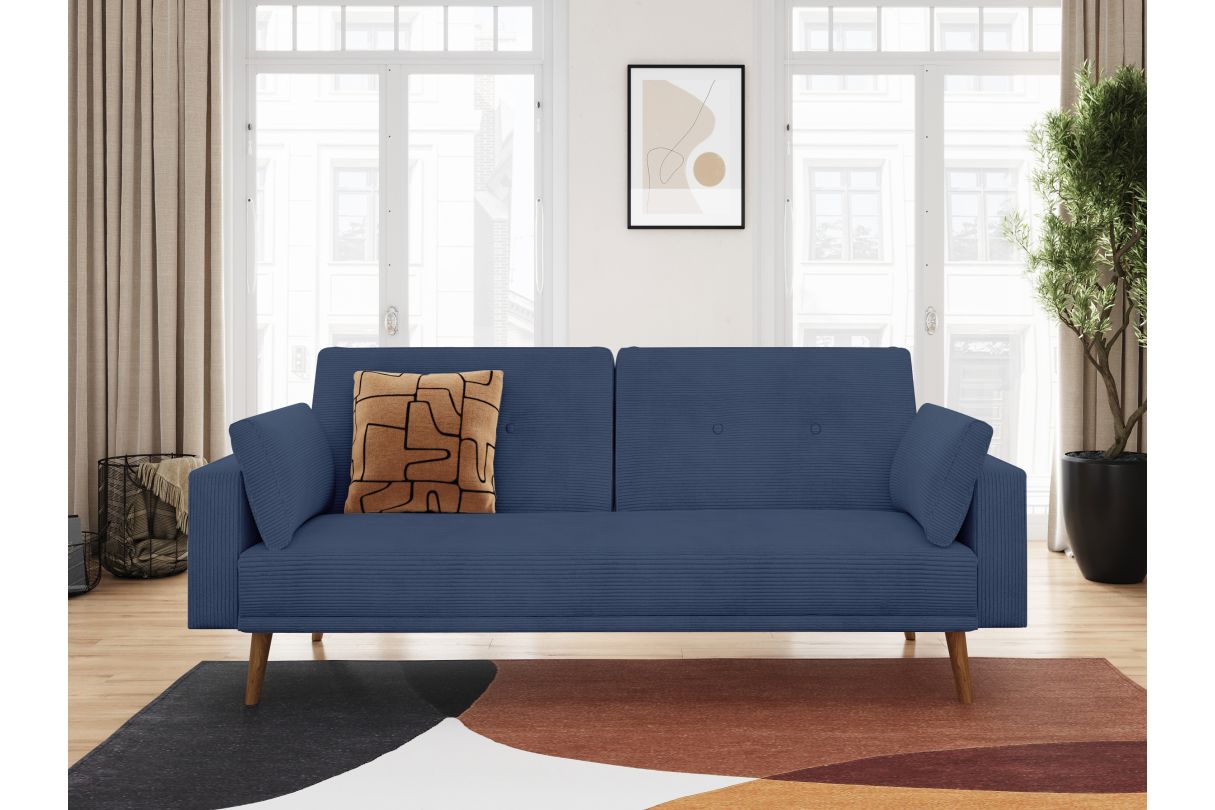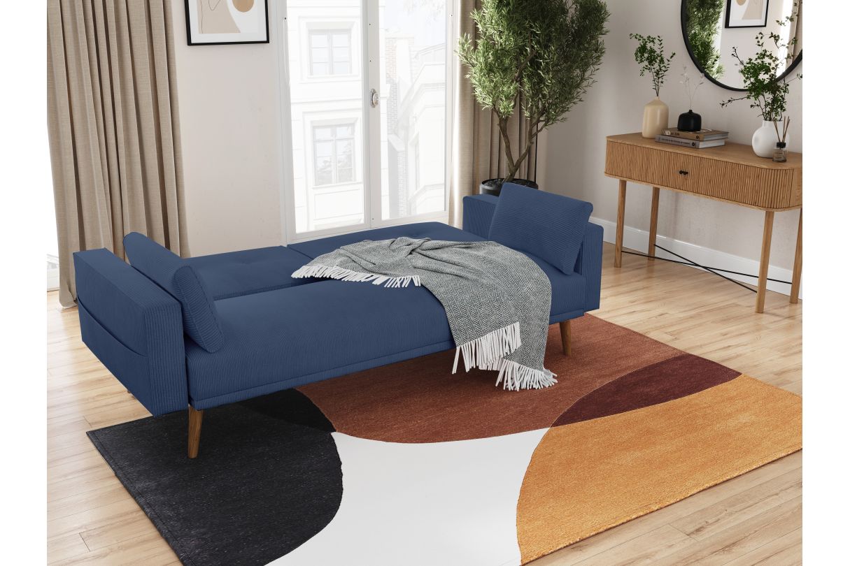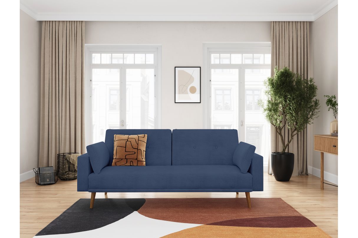 Canapé droit scandinave ELGA convertible 3 places en velours côtelé - Bleu foncé