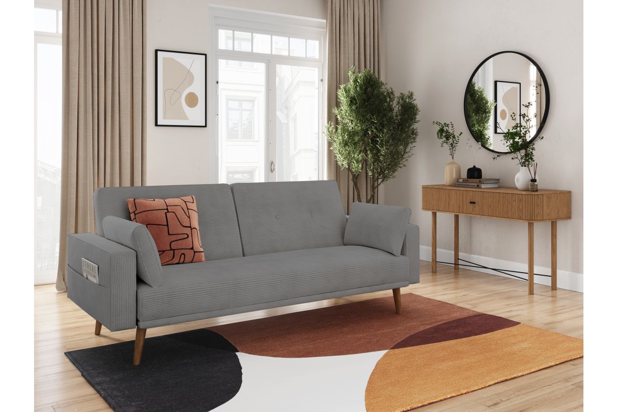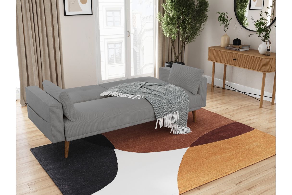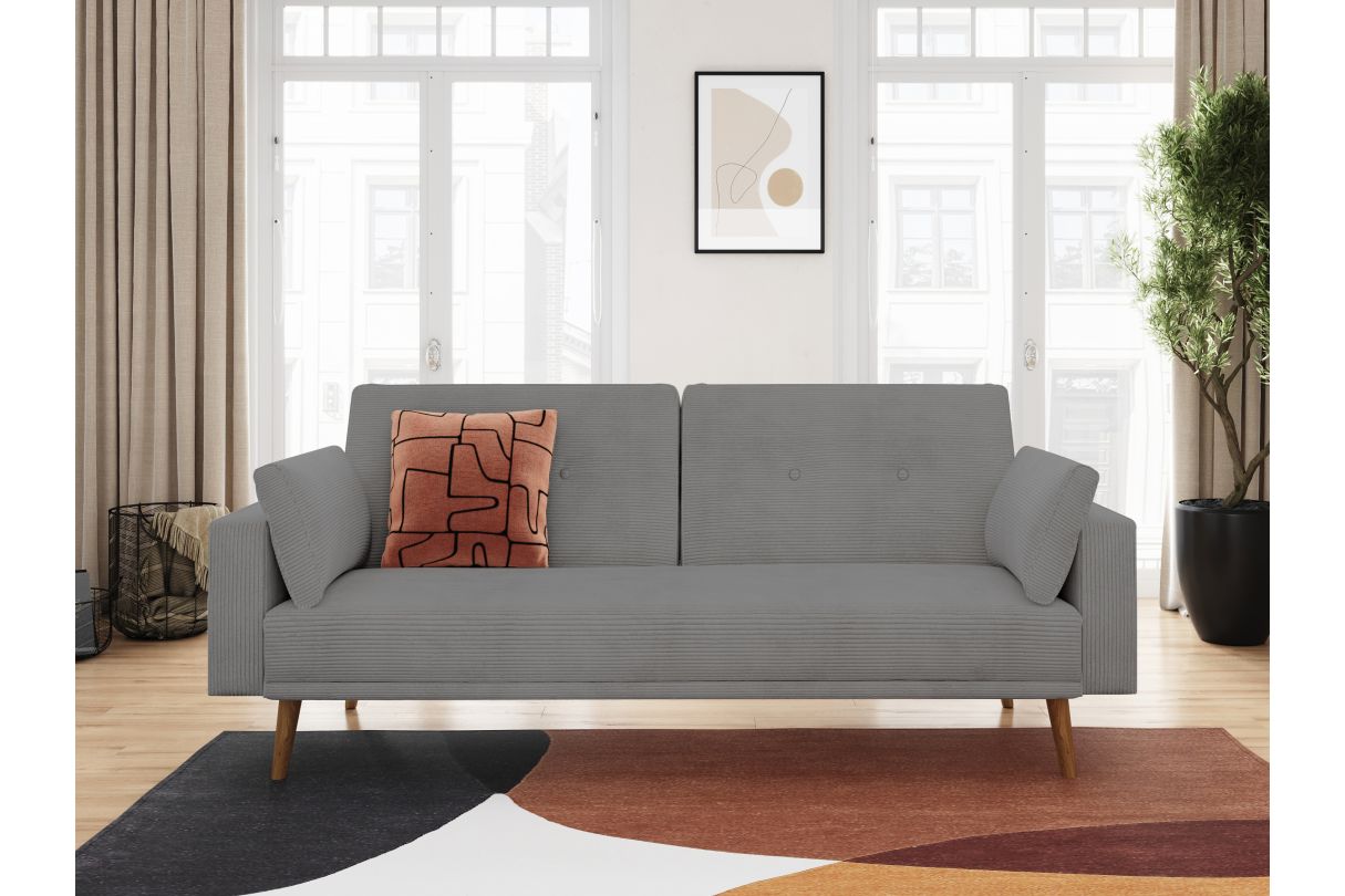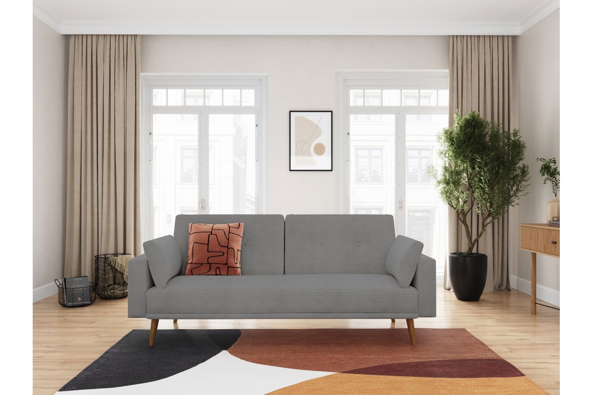 Canapé droit scandinave ELGA convertible 3 places en velours côtelé - Gris