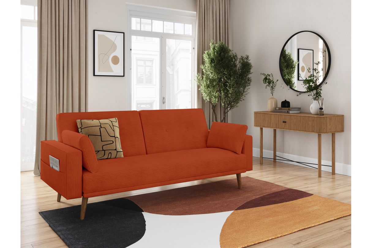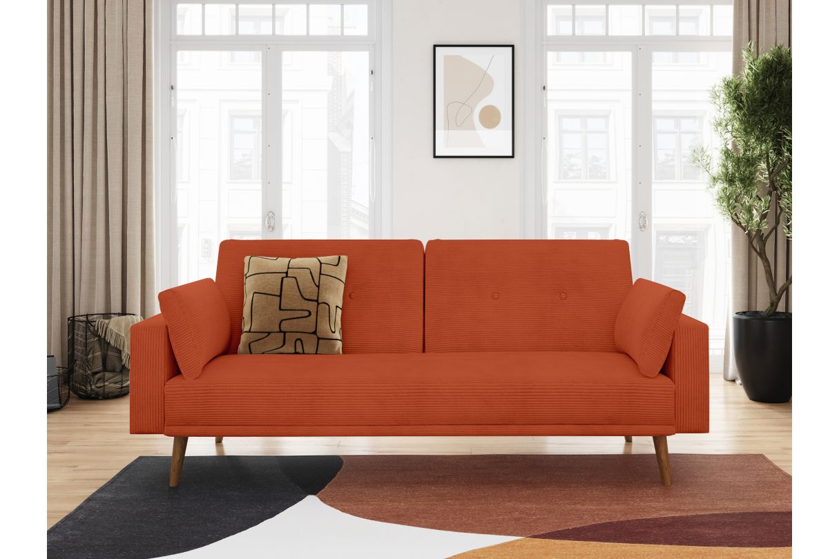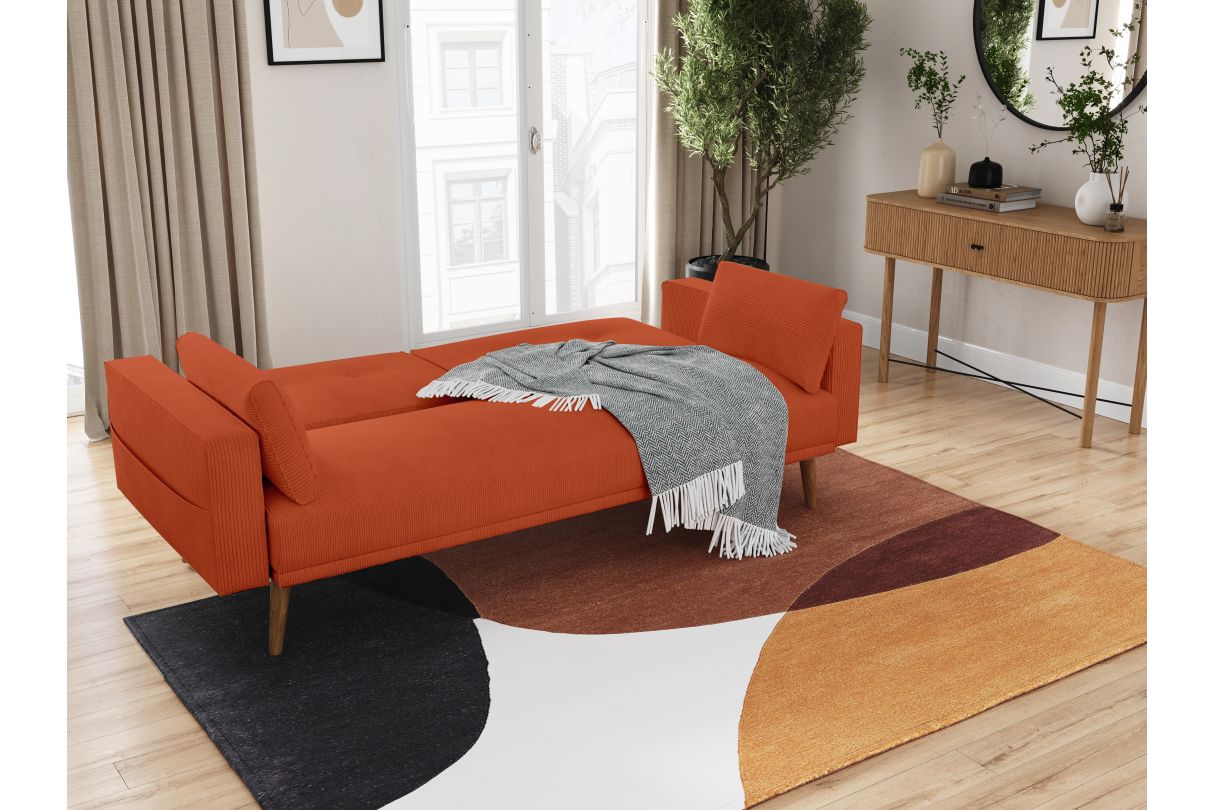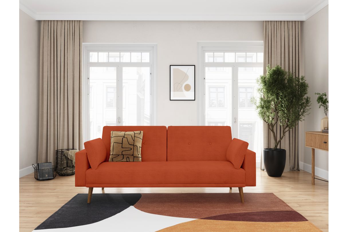 Canapé droit scandinave ELGA convertible 3 places en velours côtelé - Terracotta