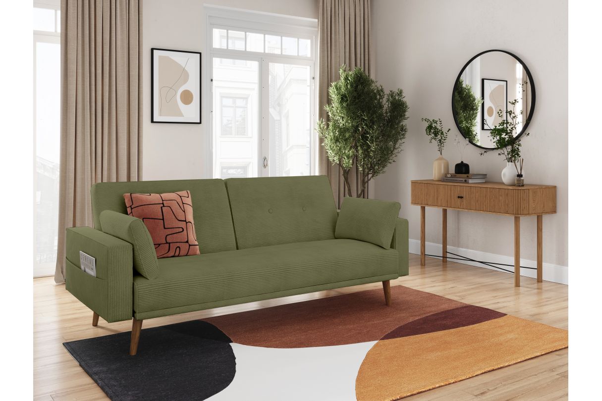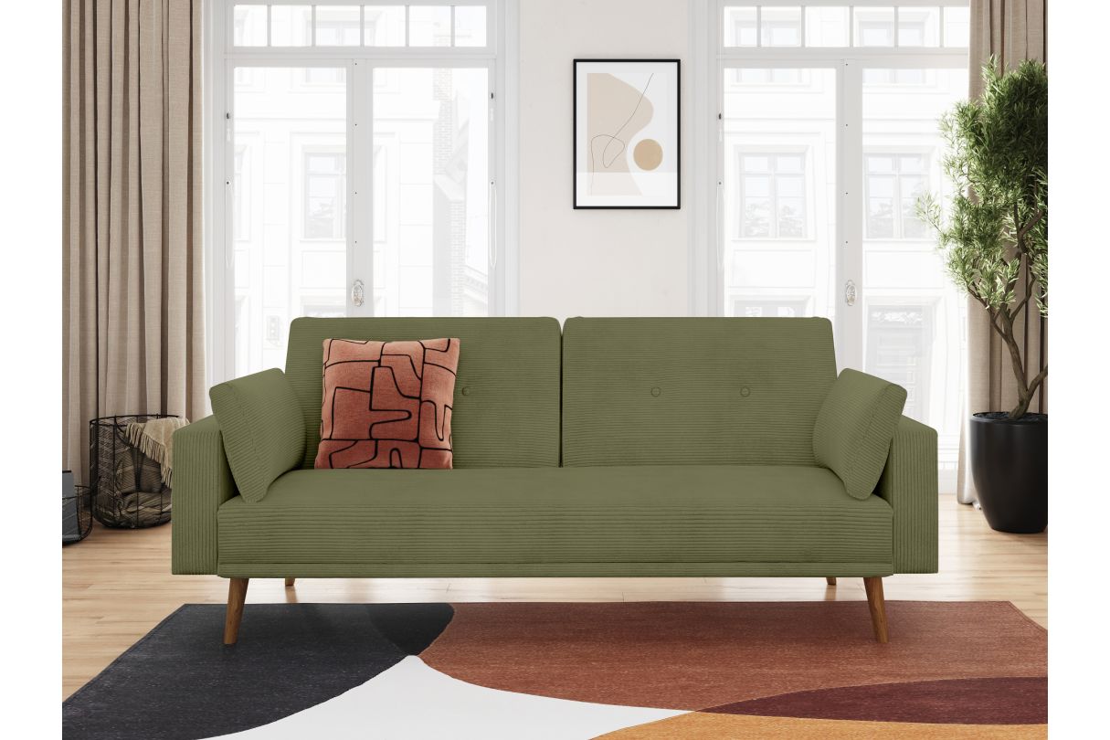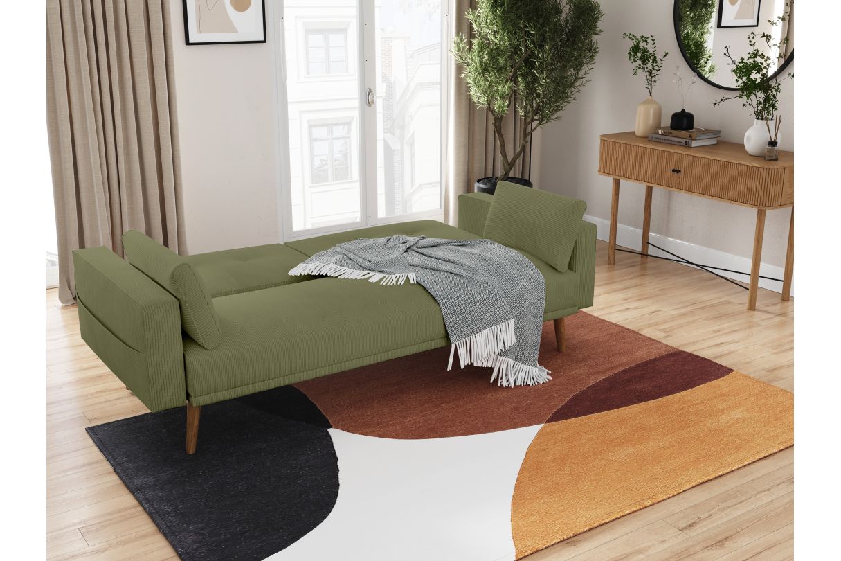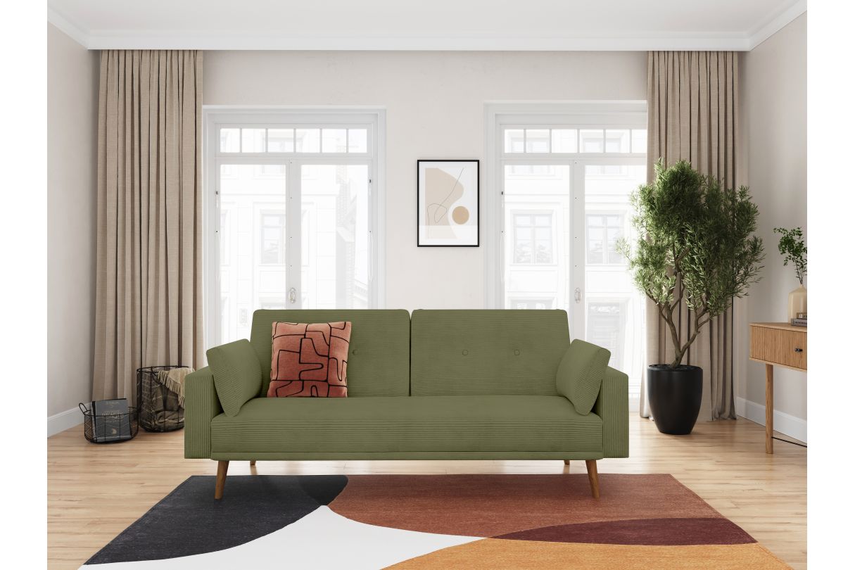 Canapé droit scandinave ELGA convertible 3 places en velours côtelé - Vert foncé