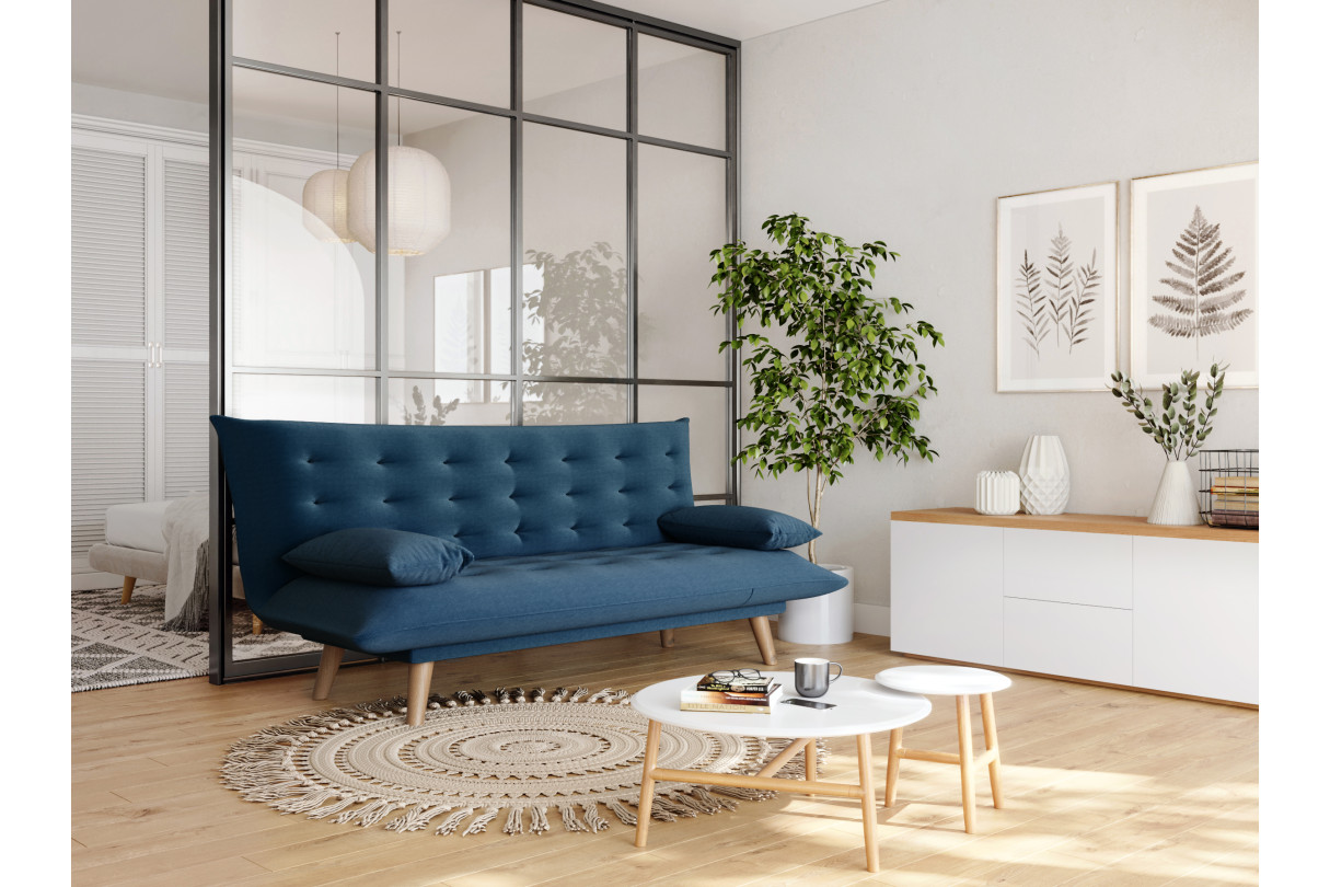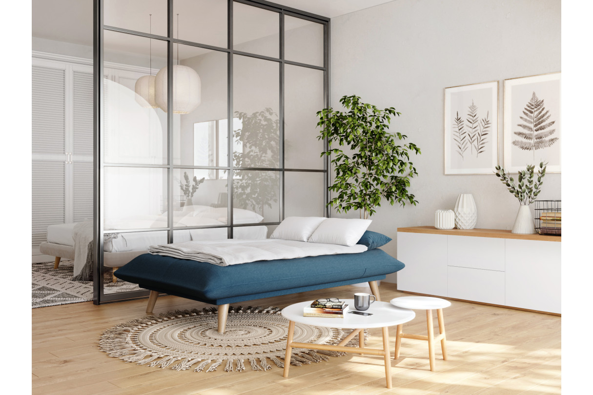 Canapé droit scandinave SONIA convertible en tissu - Bleu pétrole