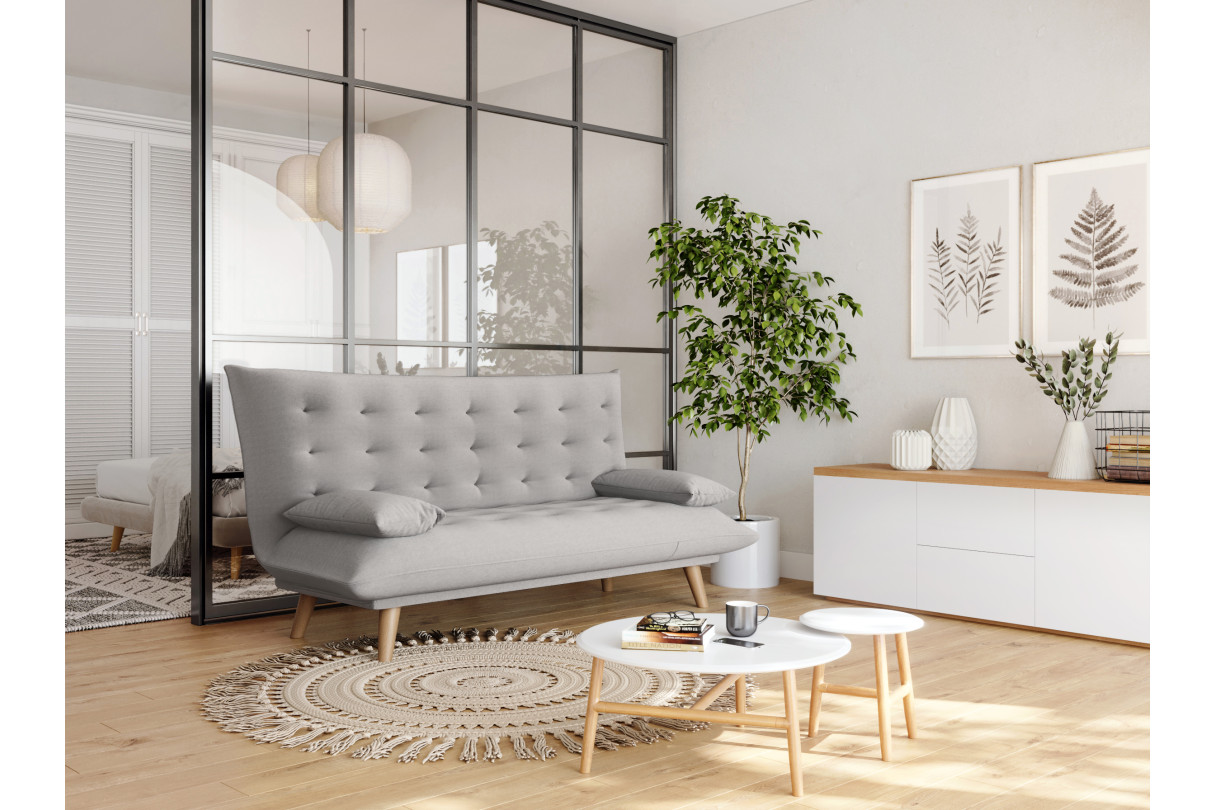 Canapé droit scandinave SONIA convertible en tissu - Gris clair
