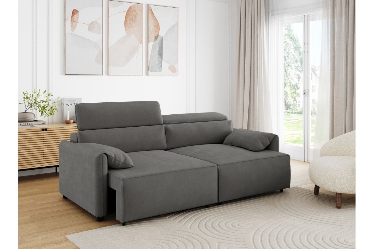 Découvrez le canapé droit VALENTIN avec assise coulissante en tissu. Disponible en beige, gris, bleu, vert et terracotta, ce canapé offre un espace de détente plus grand grâce à son assise coulissante. Le mécanisme est simple, il vous suffi de tirer l'assise pour transformer le canapé en un espace de détente plus grand. Les têtières sont réglables pour un confort personnalisé. Le canapé peut accueillir jusqu'à 3 personnes. Transformez votre salon selon vos goûts grâce aux différents coloris disponibles.