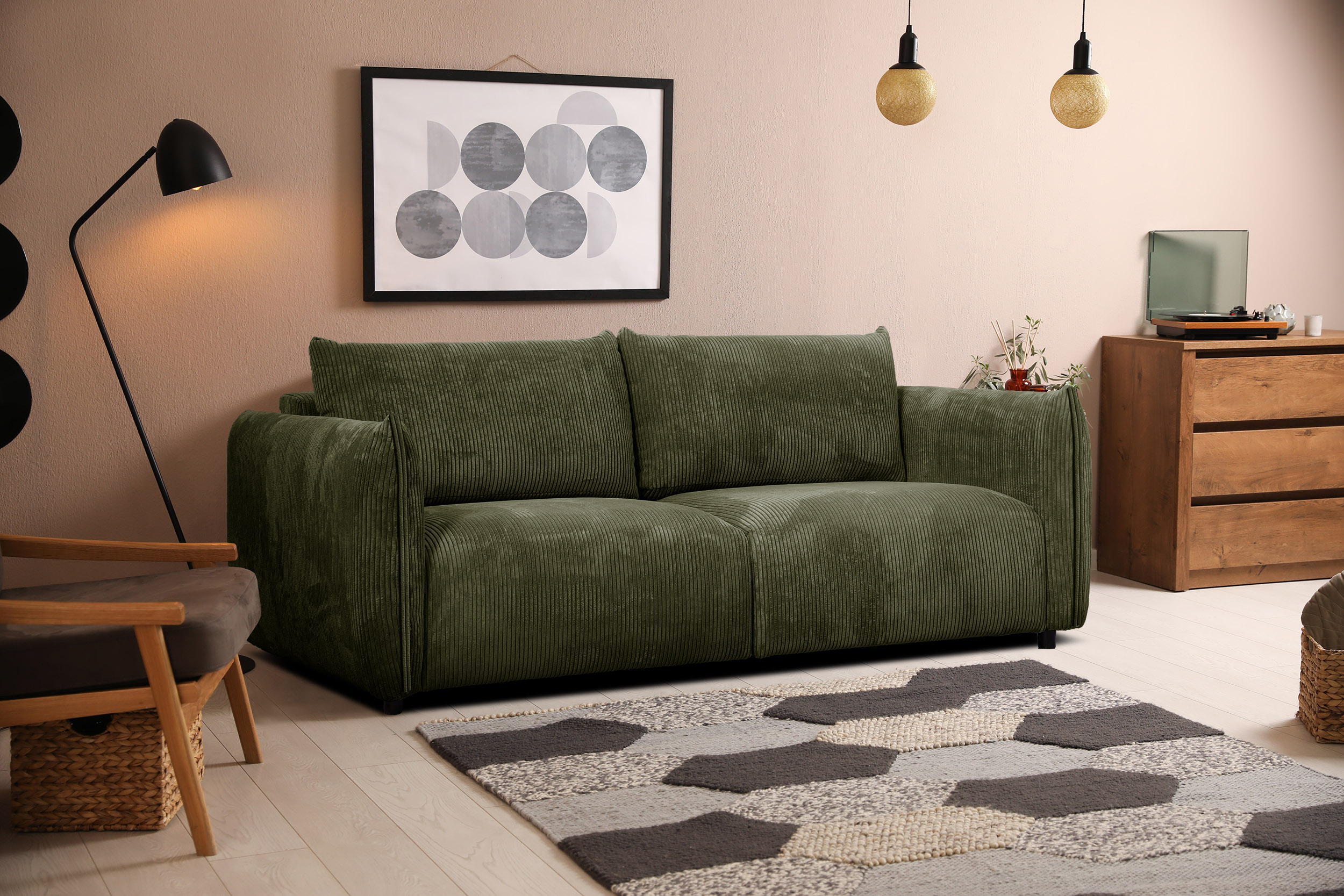 - Revêtement tendance : disponible en tissu velours côtelé, moderne et élégant, décliné dans une large gamme de couleurs pour s’adapter à tous les intérieurs.
