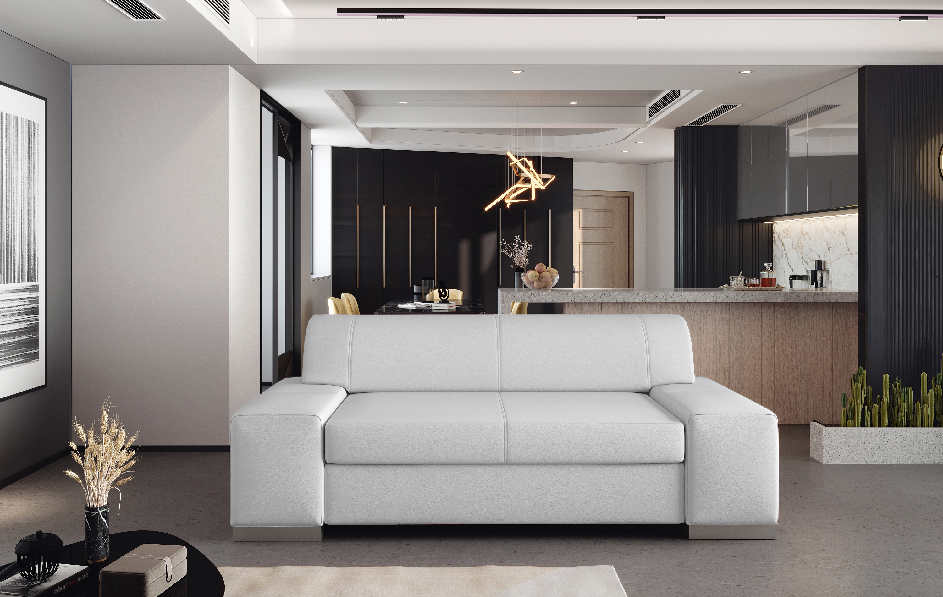 Envie d’un canapé au style affirmé, qui allie modernité, confort et résistance au quotidien ? Le modèle PLAZO, décliné en PU italien de haute qualité, vous offre une solution raffinée, parfaite pour ceux qui recherchent un design soigné sans compromis sur la praticité. Disponible en version 2 ou 3 places, ainsi qu’en angle, le PLAZO s’intègre aisément dans tous les espaces de vie, avec une touche chic et contemporaine. Que ce soit dans un salon urbain, un loft épuré ou une pièce à vivre classique, il impose son style tout en restant fonctionnel et confortable. Un revêtement pensé pour durer Le revêtement en PU italien 100% PU combine élégance visuelle et facilité d’entretien. Il imite à la perfection le cuir véritable, tout en étant plus accessible et résistant à l’usure. Sa structure imperméable et anti-taches en fait un choix parfait pour les familles comme pour les espaces plus formels. Caractéristiques du revêtement : Haute résistance à l’abrasion Garnissage poids : 270 g/m² Matière ignifugée, adaptée à un usage domestique sécurisé Surface facile à nettoyer avec un chiffon doux et humide Disponible en plusieurs configurations PLAZO 2 places : 190 x 92 x 73 cm – design compact, sans accoudoirs pour plus de légèreté PLAZO 3 places : 210 x 92 x 73 cm – avec accoudoirs carrés, idéal pour structurer l’espace Version angle également disponible pour les besoins de convivialité Structure : bois massif (pin) et panneaux de particules Assise : mousse T3040 Dossier : sangles + mousse T2542 Pieds : plastiques argentés – hauteur 6 cm Hauteur d’assise : 43 cm Profondeur d’assise : 66 cm Poids maximum supporté : 220 kg Fabrication européenne – Garantie 5 ans Livraison : 2 places : 1 colis – 192 x 92 x 75 cm 3 places : 1 colis – 212 x 92 x 75 cm Une allure cuir sans les contraintes Le PLAZO en PU s’adresse à celles et ceux qui veulent un canapé à l’aspect noble, sans renoncer à la facilité d’entretien. Sa texture soyeuse, son confort d’assise et ses lignes épurées en font un véritable atout pour votre intérieur. Option(s) sélectionnée(s) : - Couleur : Noir - Nombre de place(s) : 3 places