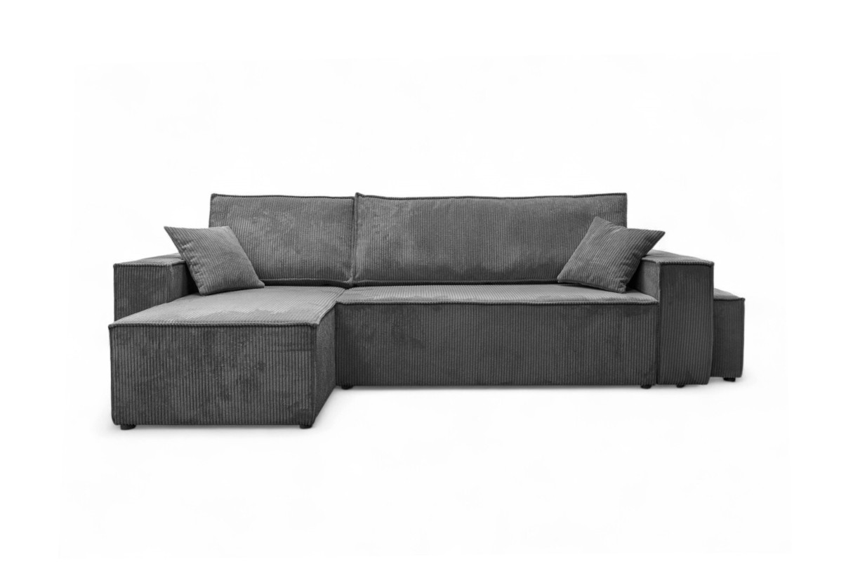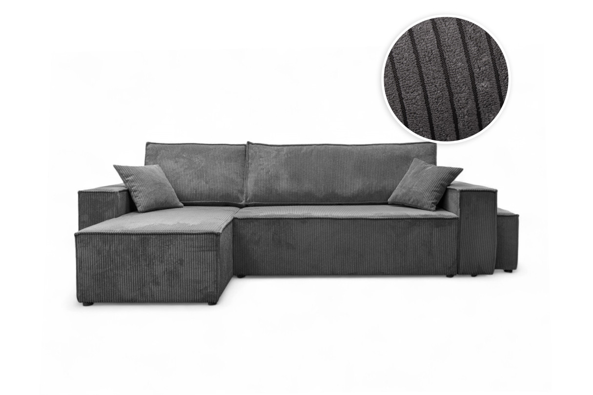 | Libellé | Canapé FARAH d'angle réversible et convertible 4 places avec un pouf en velours côtelé - Gris |