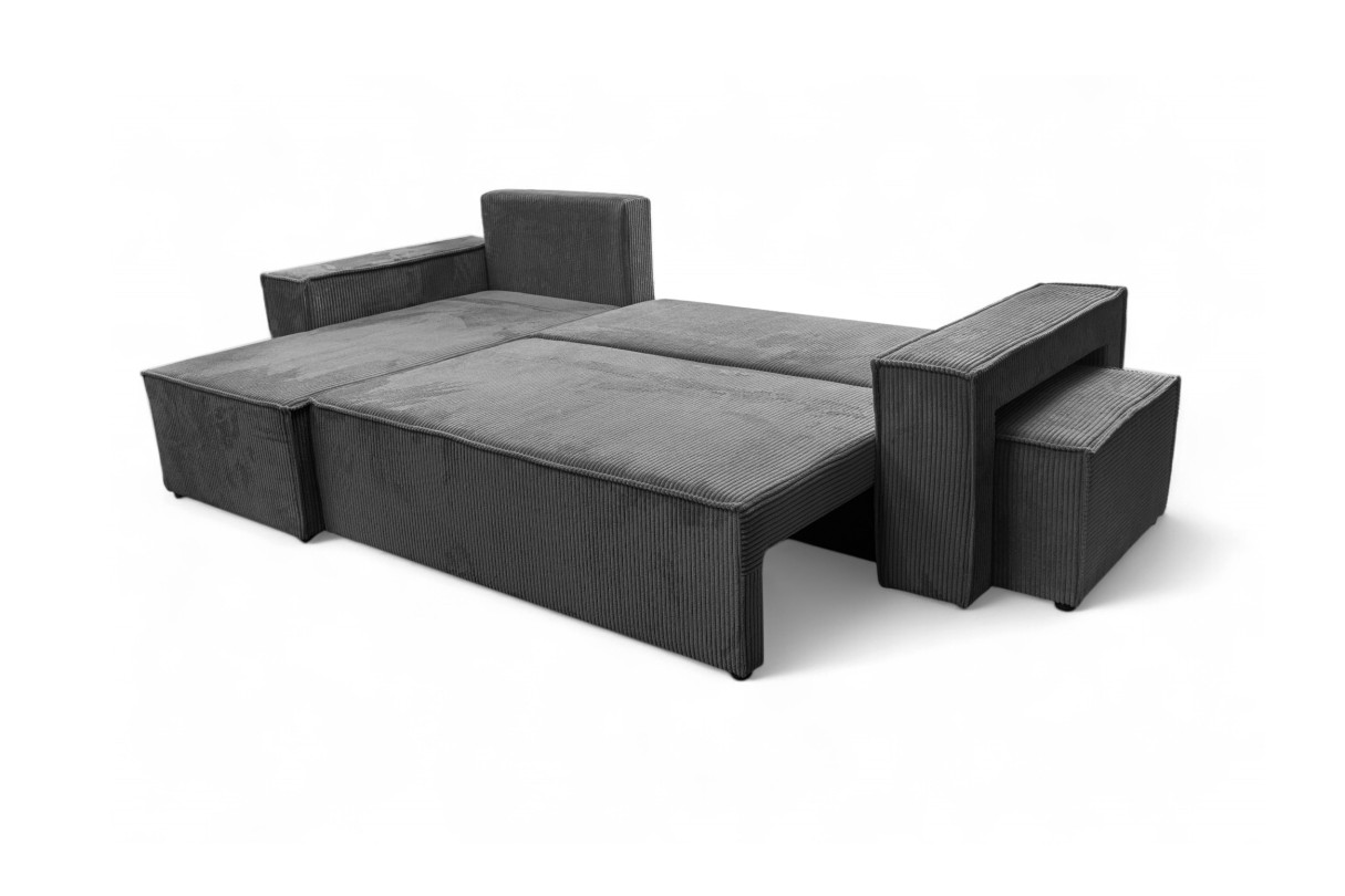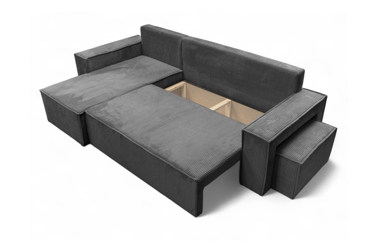 Canapé FARAH d'angle réversible et convertible 4 places avec un pouf en velours côtelé - Gris