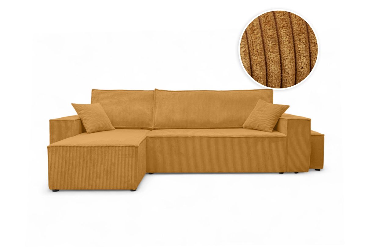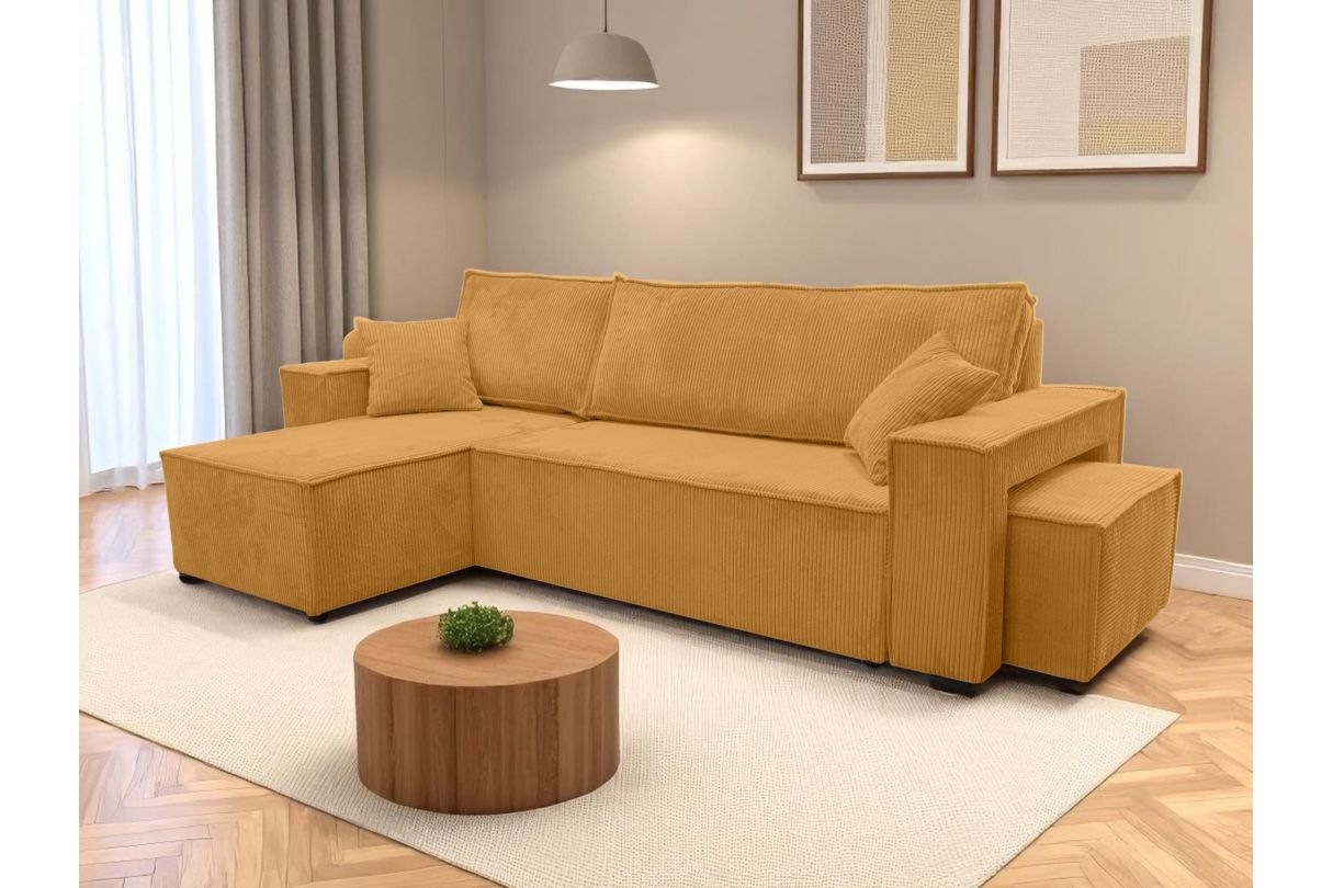 | Libellé | Canapé FARAH d'angle réversible et convertible 4 places avec un pouf en velours côtelé - Jaune |