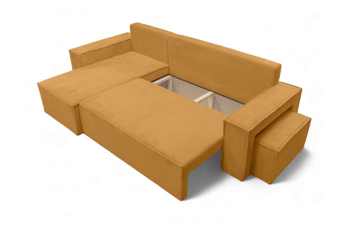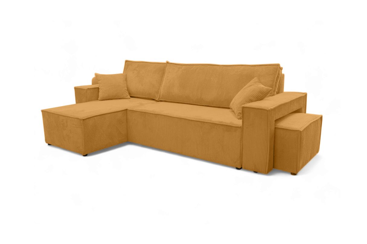 Canapé FARAH d'angle réversible et convertible 4 places avec un pouf en velours côtelé - Jaune