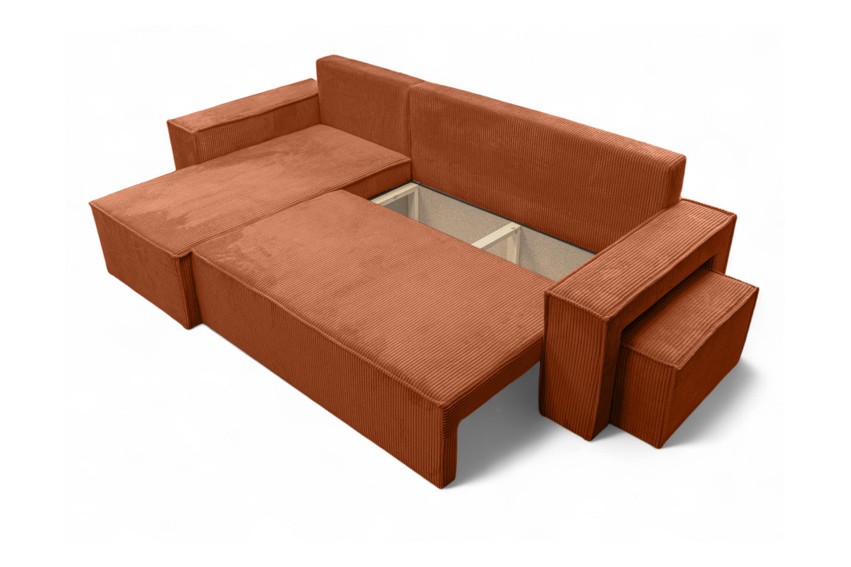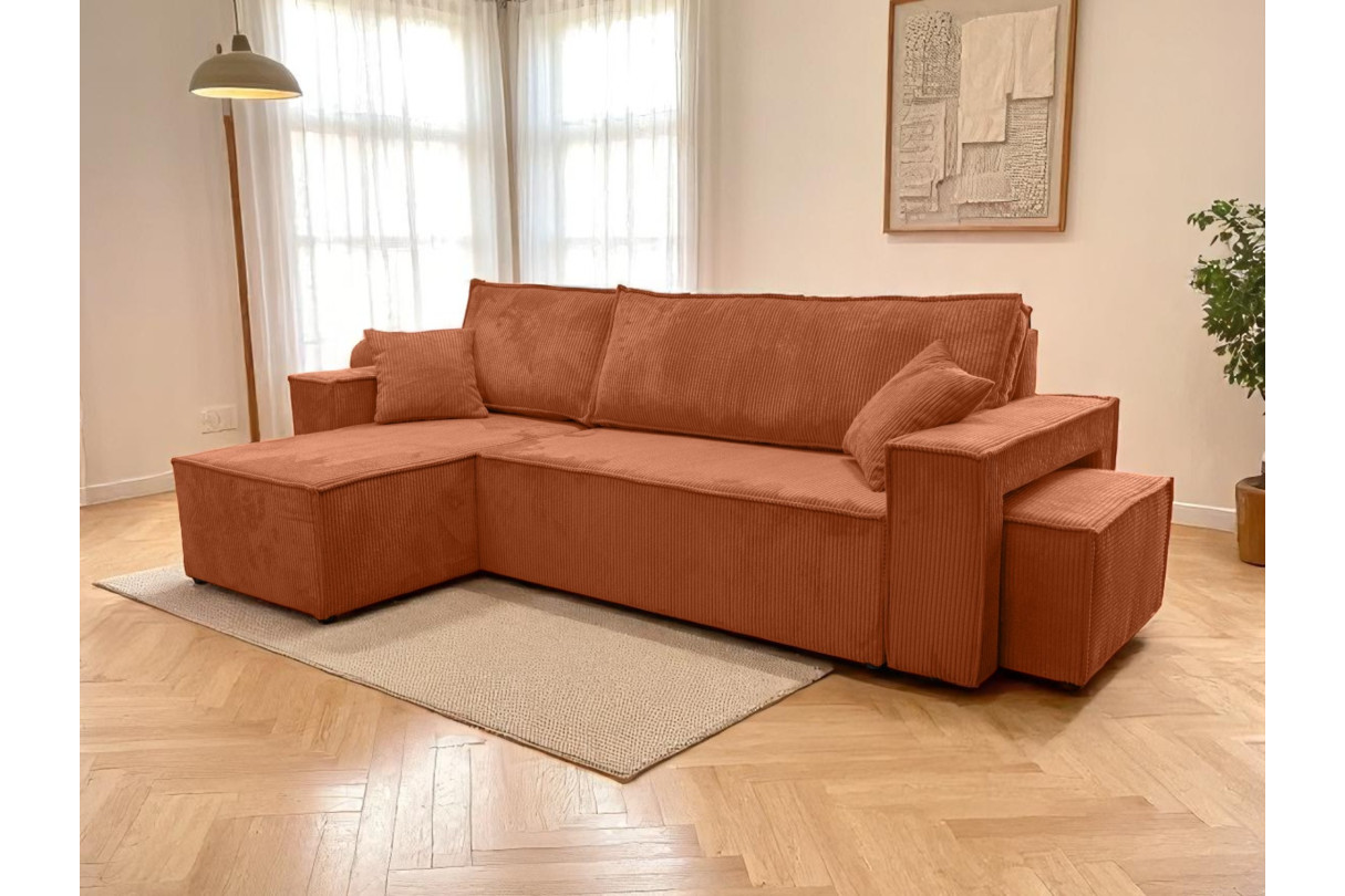 | Libellé | Canapé FARAH d'angle réversible et convertible 4 places avec un pouf en velours côtelé - Terracotta |