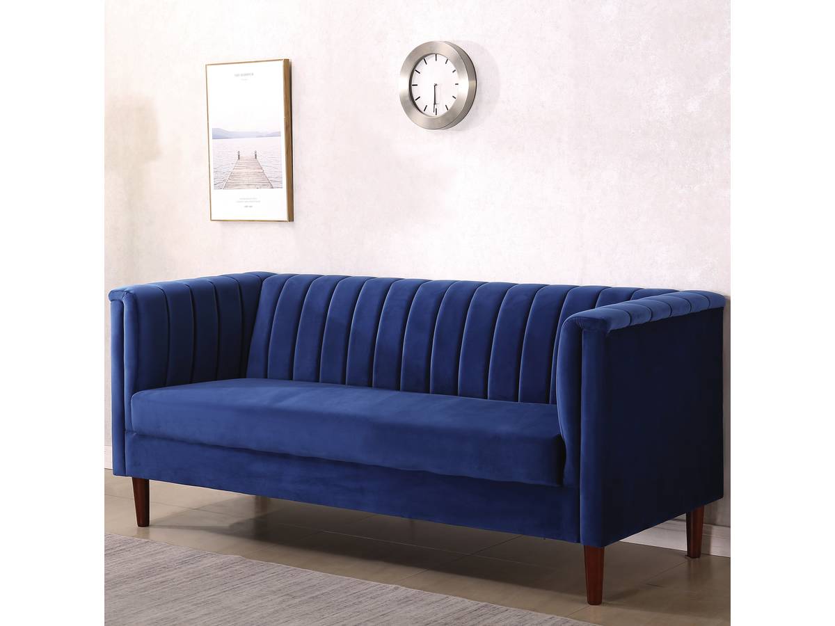 Canapé fixe en velours "Ellison" - 196 x 76 x 82 cm - 3 places - Bleu foncé