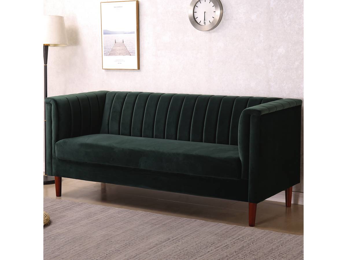 | Libellé | Canapé fixe en velours "Ellison" - 196 x 76 x 82 cm - 3 places - Vert foncé |