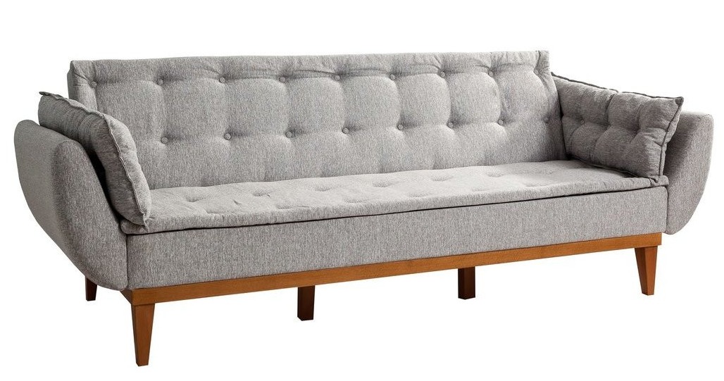 Canapé lit clic clac 3 places tissu gris clair Valika