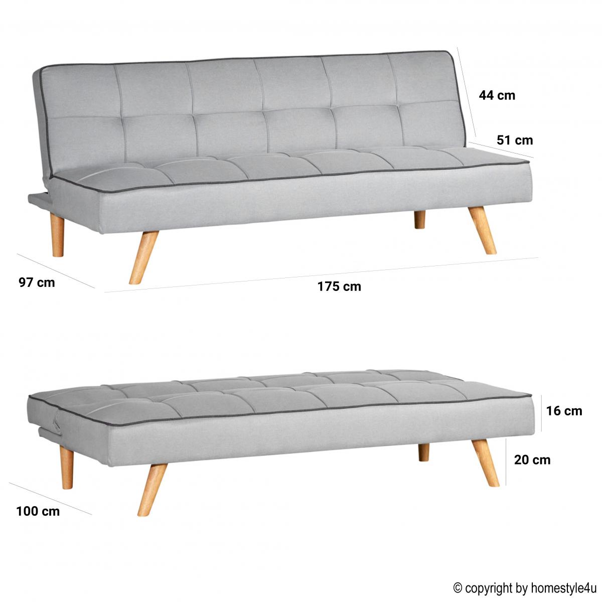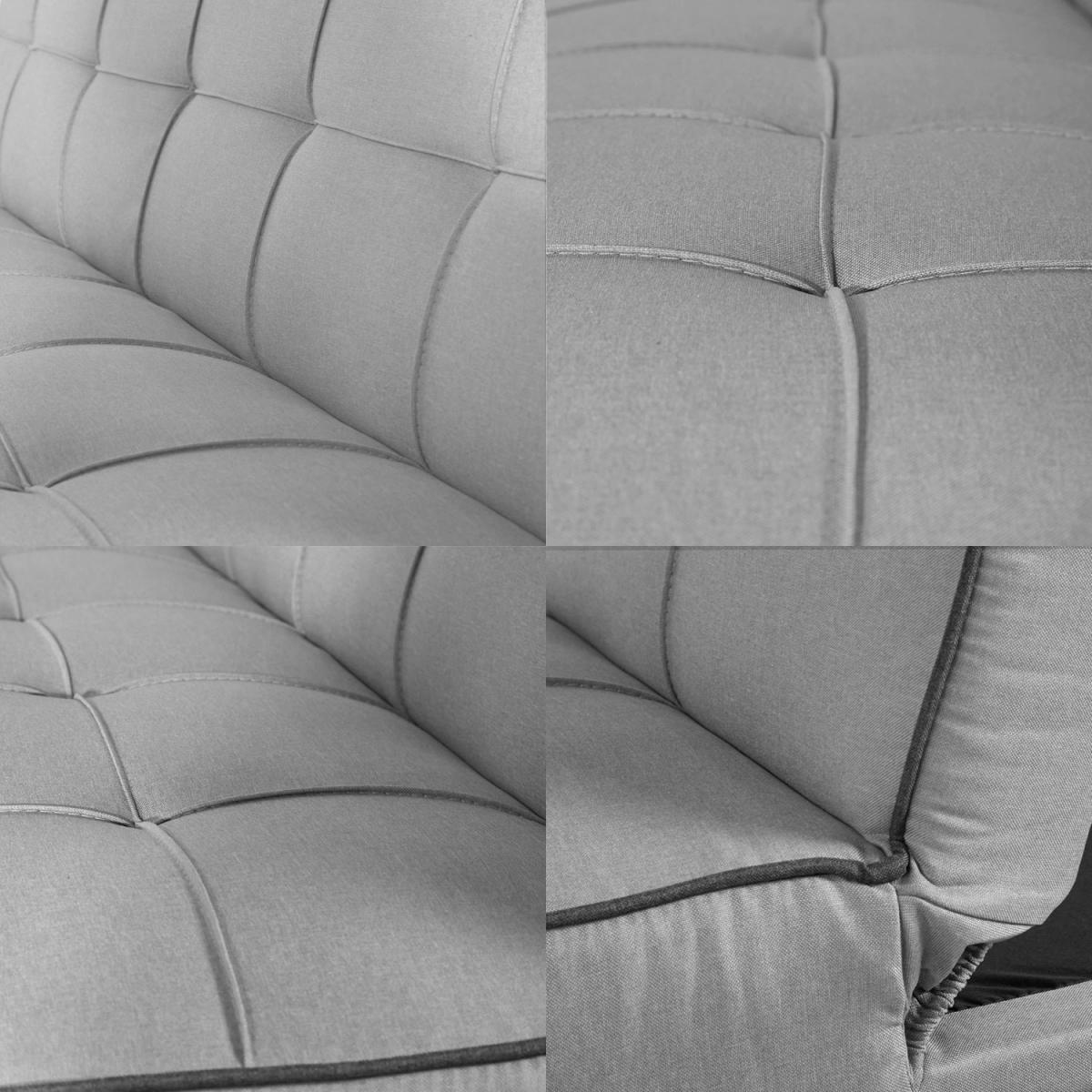 Le tissu du canapé avec fonction lit ou du 3 places est optiquement très bien structuré et contraste avec les coutures matelassées. Le canapé ou le canapé-futon a une structure en bois