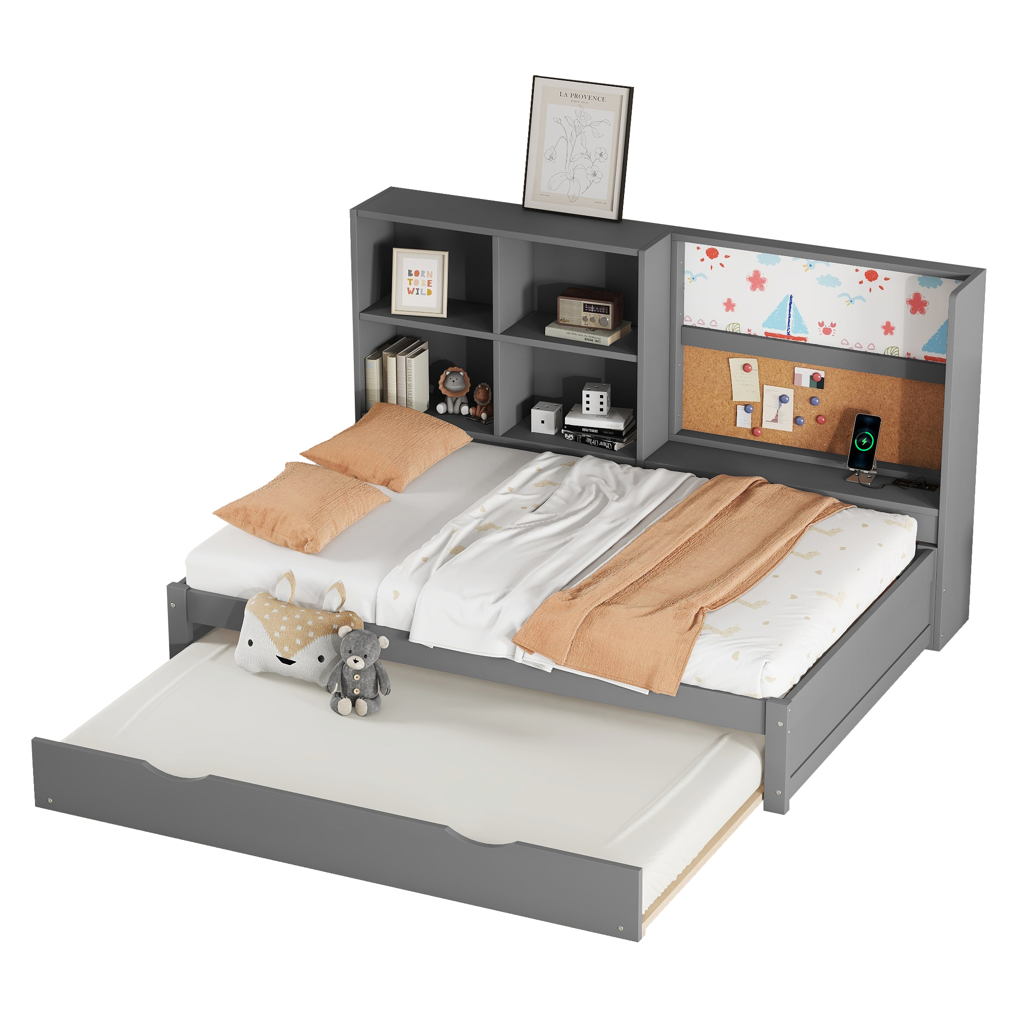 Canapé - lit gris 90 * 200cm avec lit gigogne, port de charge USB, plusieurs compartiments de rangement