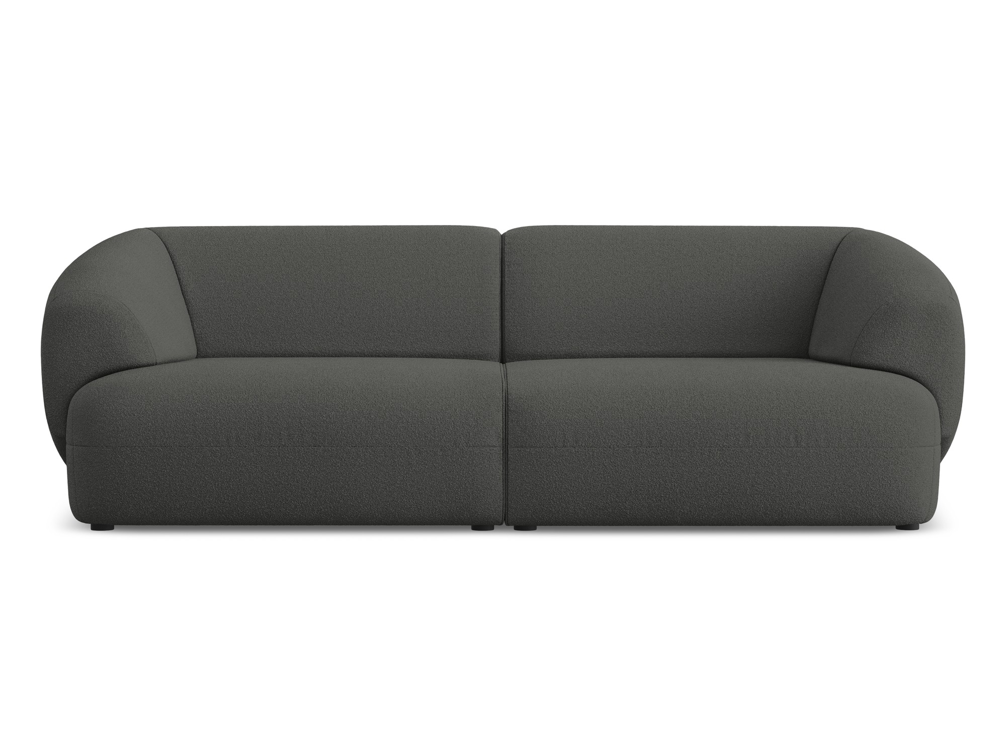 Le canapé Moana, conçu pour accueillir confortablement jusqu'à quatre personnes, est l'équilibre parfait entre design moderne et confort de longue durée. Avec ses dimensions de 232 cm de largeur et 98 cm de profondeur, il est idéal pour créer un espace de détente élégant et convivial. Le tissu bouclé de ce canapé est d'une texture unique et apporte une profondeur visuelle, ajoutant une touche de sophistication à n'importe quelle pièce. Conçu pour les amateurs de design, son tissage asymétrique et sa résistance à l'abrasion de 45 000 cycles en font un choix à la fois esthétique et pratique, garantissant une durabilité optimale. La structure du canapé est renforcée par un cadre en bois dur (principalement en hêtre) et des ressorts ondulés pour une assise ferme et stable. Le rembourrage en mousse haute résilience et en mousse polyuréthane assure un confort supérieur, tandis que les accoudoirs de 30 cm apportent un soutien supplémentaire. Les pieds noirs en plastique complètent l’esthétique moderne du canapé et lui offrent une stabilité accrue.