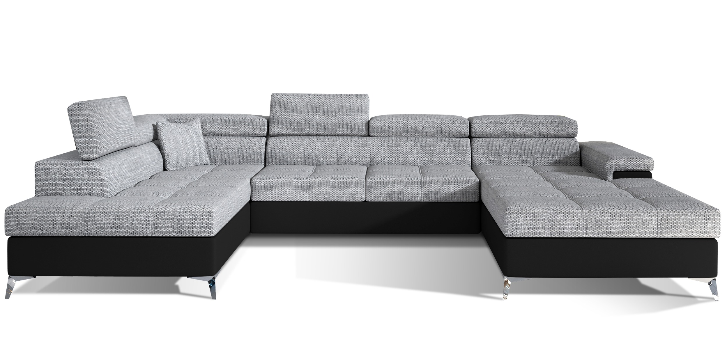 | Libellé | Canapé panoramique bi-matières tissu gris chiné et PU noir coffre de rangement à gauche Kutty 345cm |