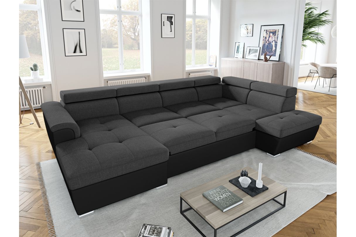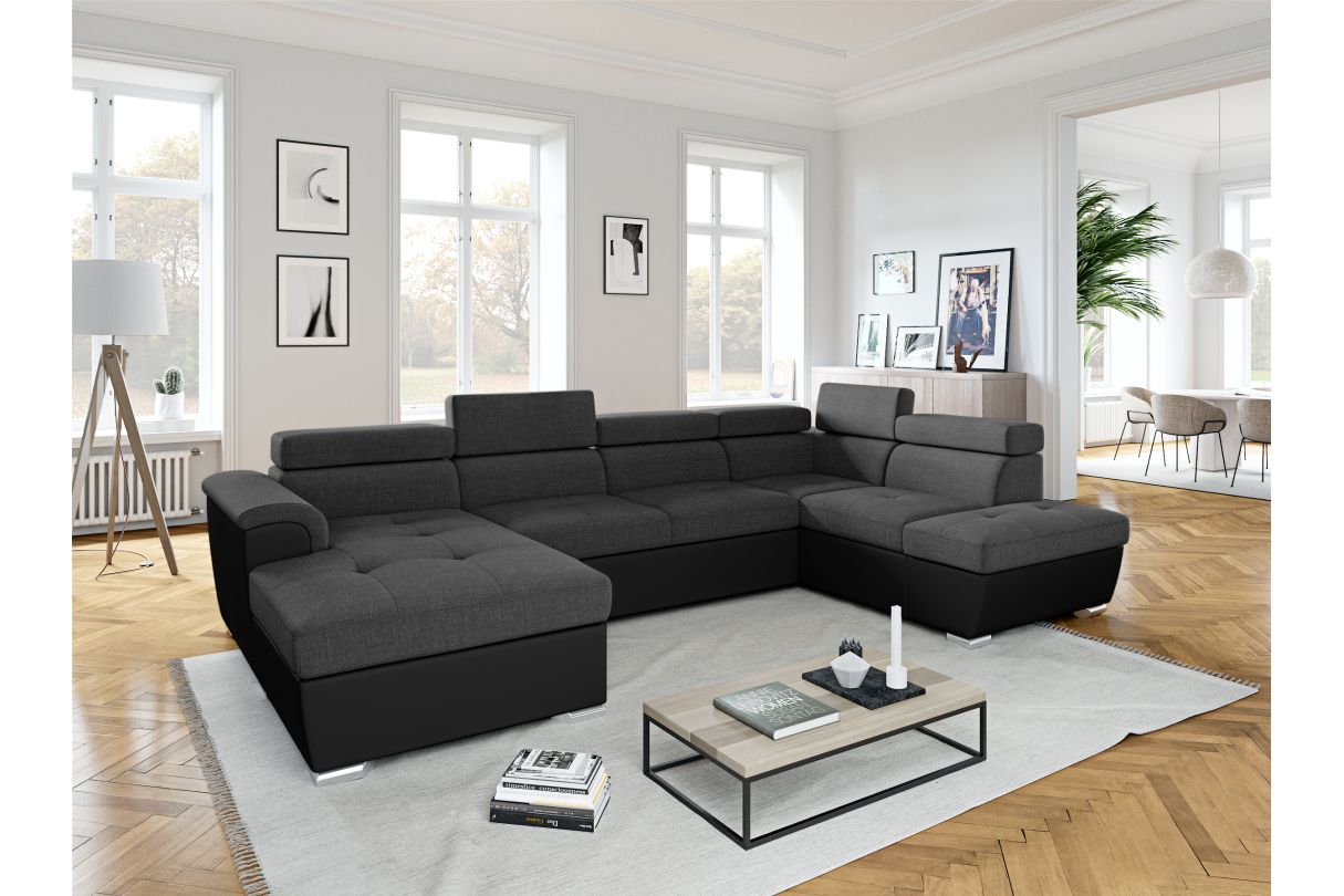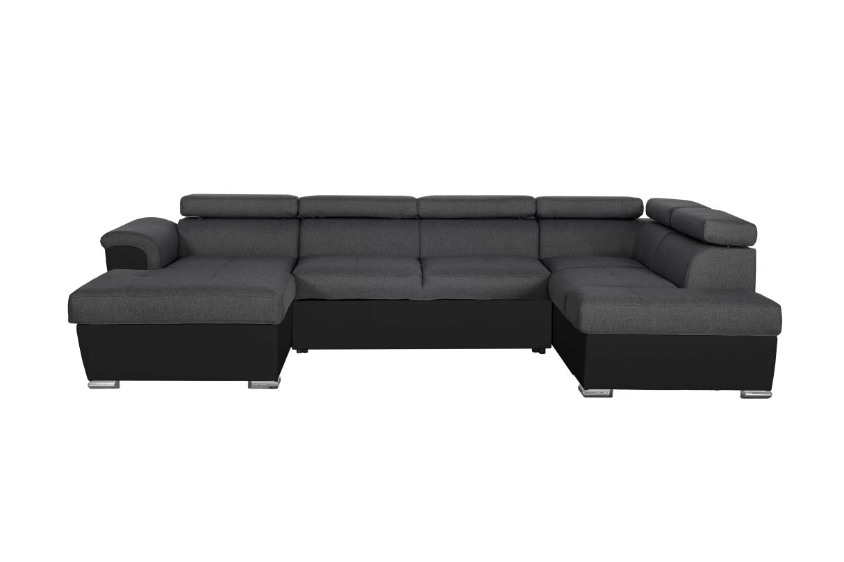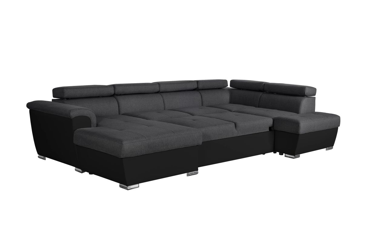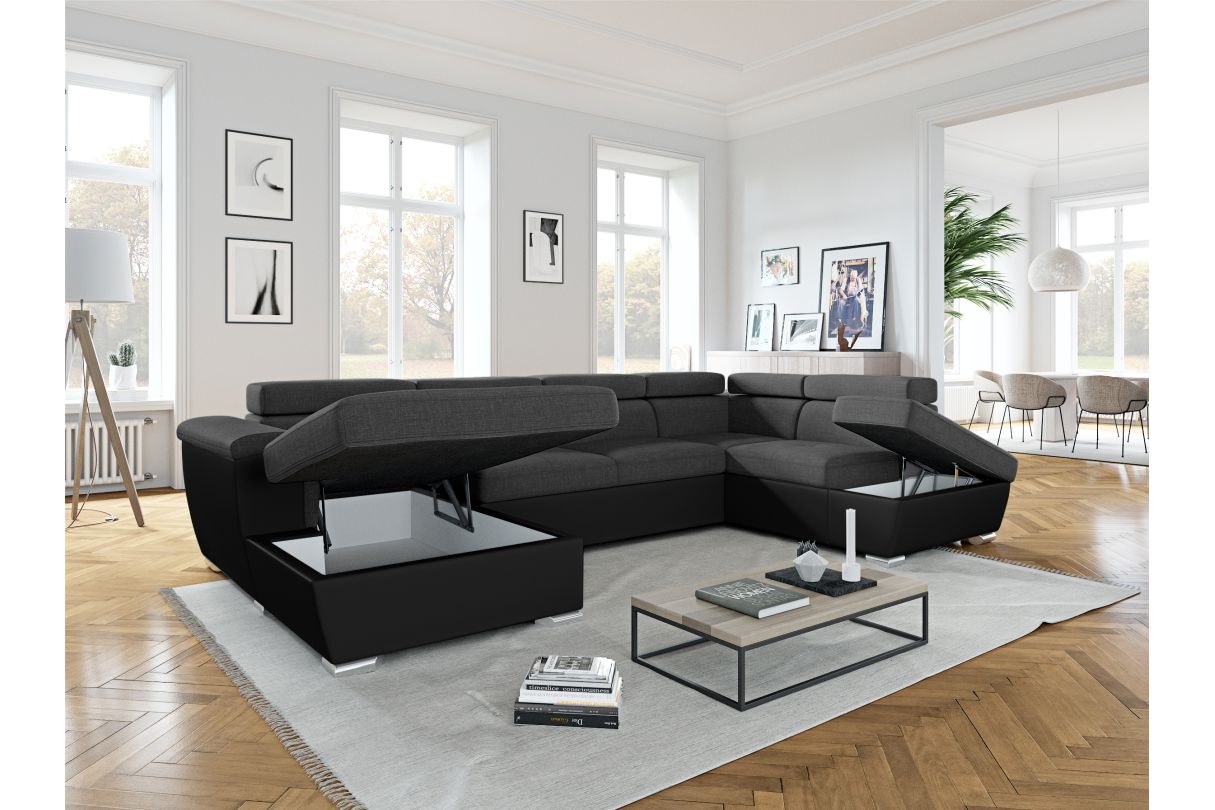 | Libellé | Canapé panoramique convertible avec 2 coffres PAOLA en tissu et simili - Gris/Noir |
