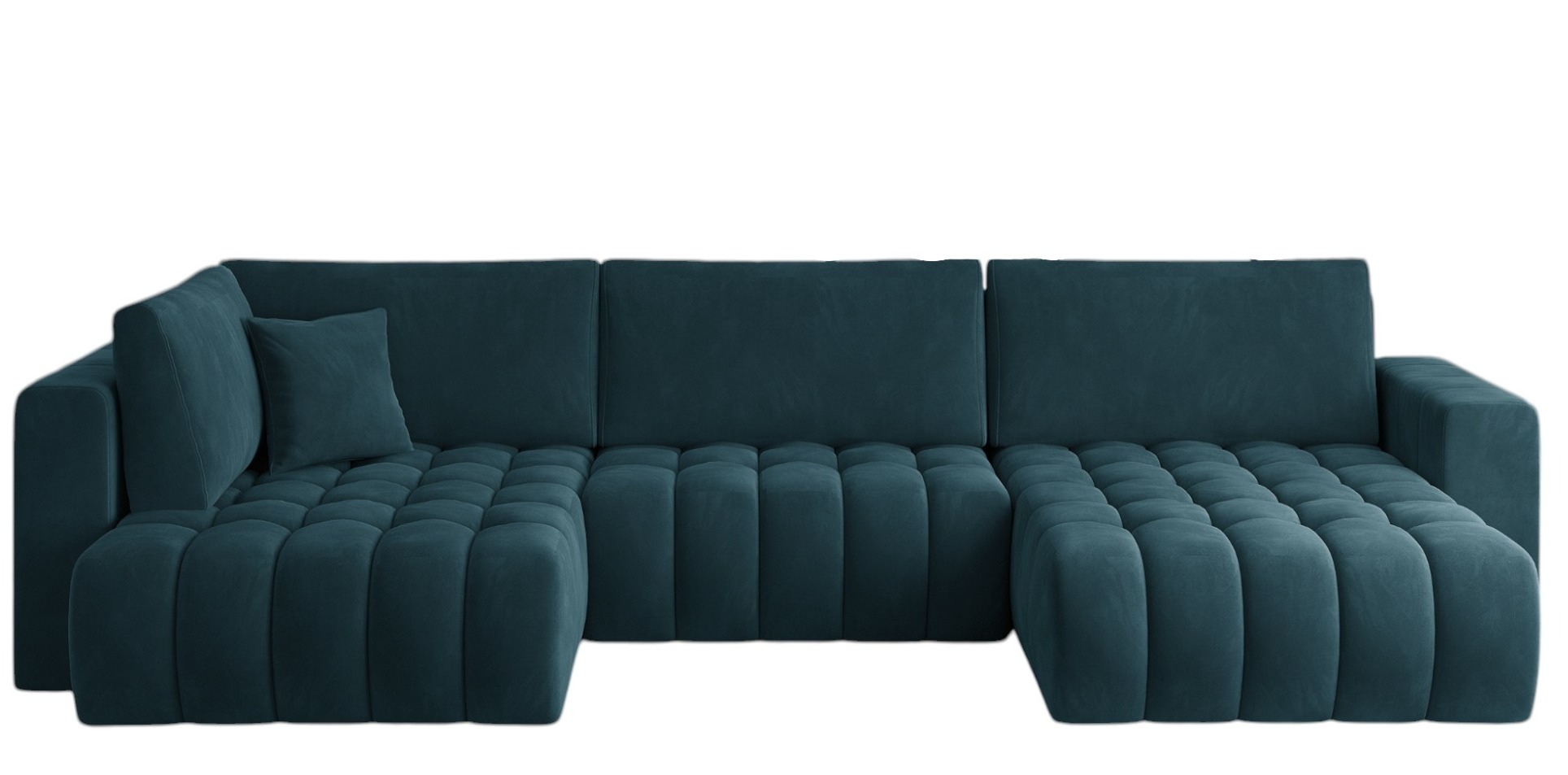 | Libellé | Canapé panoramique convertible design capitonné velours bleu canard méridienne droite Boston 350cm |