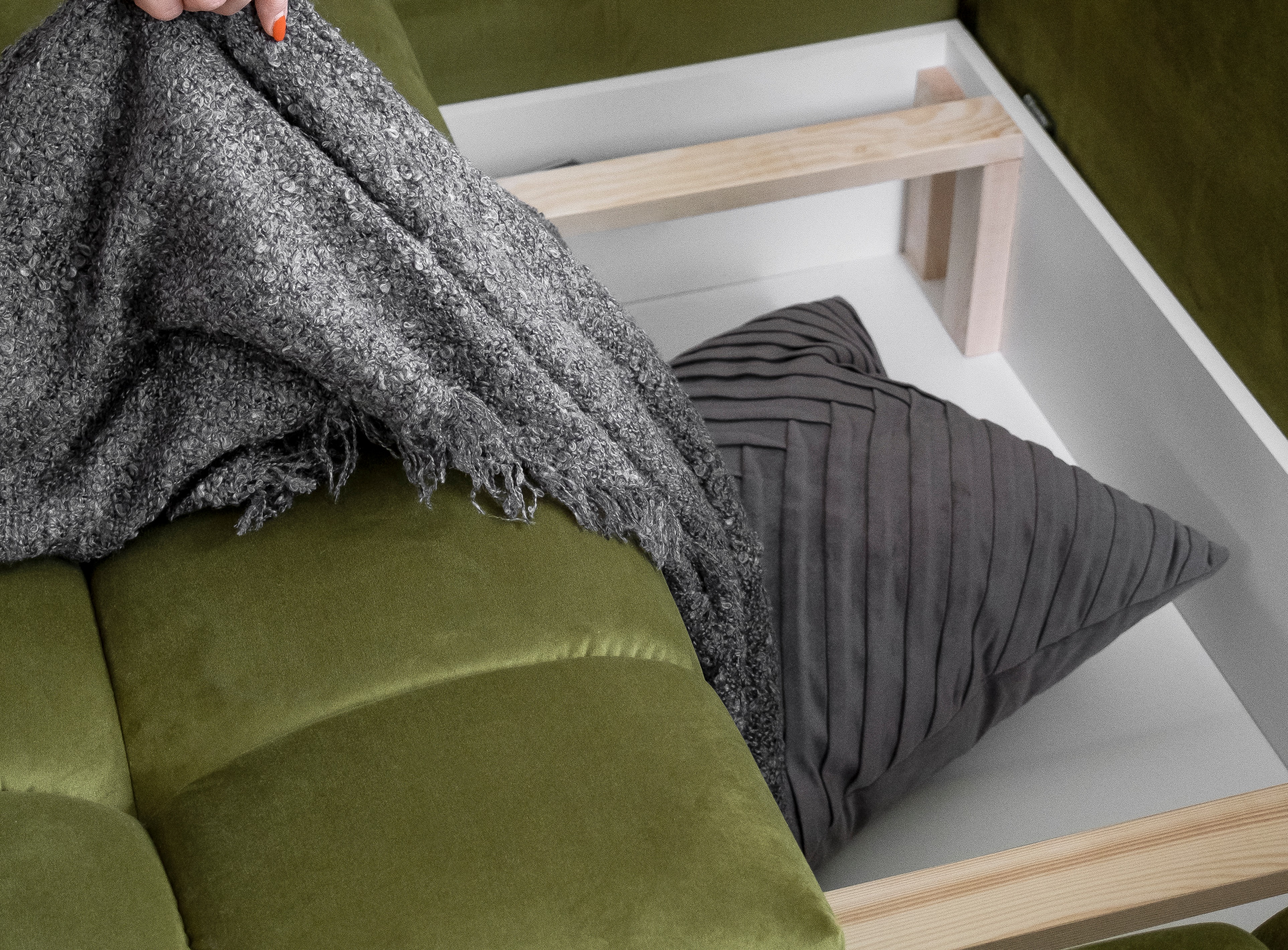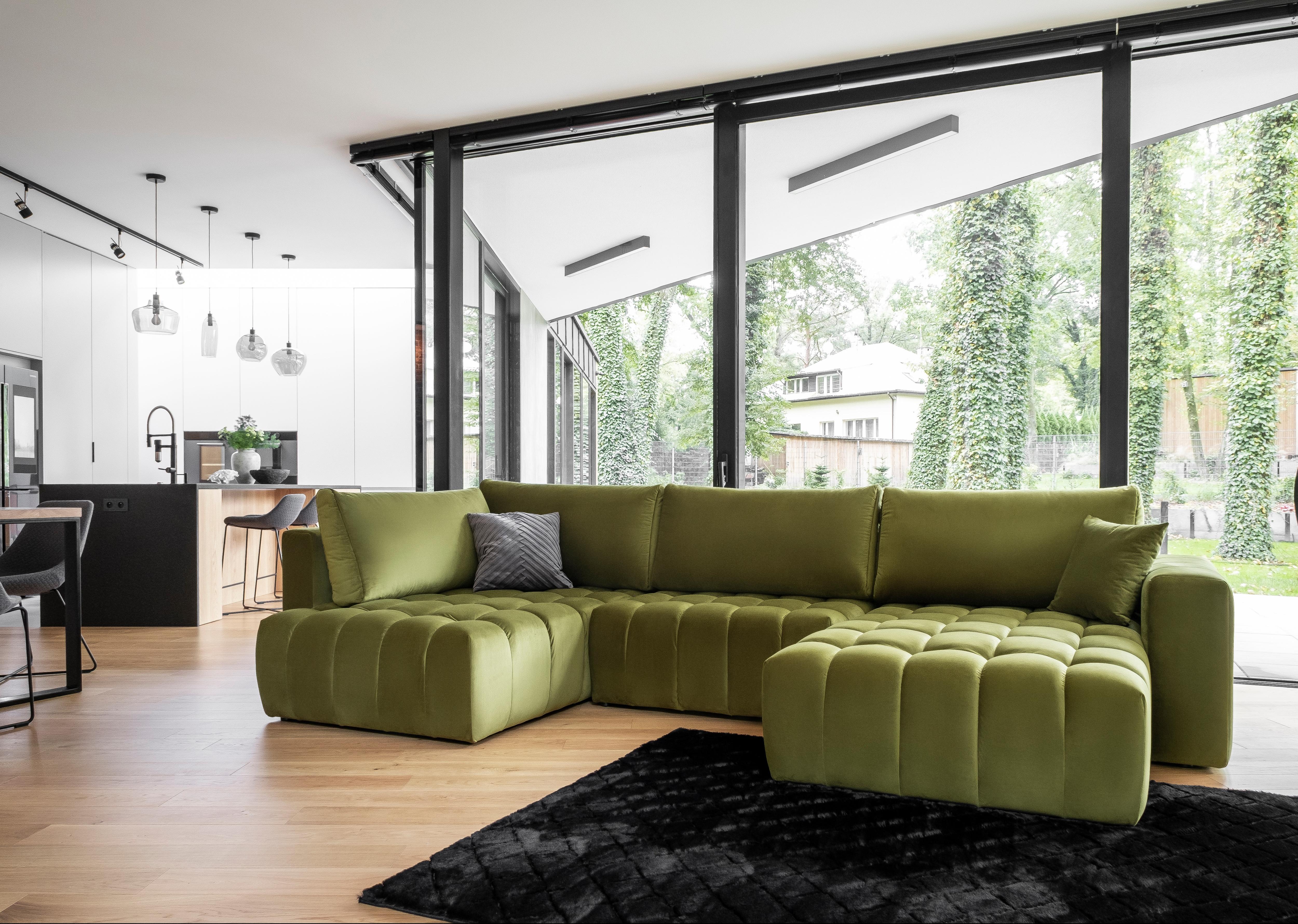 Canapé d'angle panoramique Boston velours bleu canard avec méridienne à droite - le confort ultime à portée de main Il est unique en son genre ! Vous vous asseyez, vous vous allongez, vous vous reposez et votre journée intense se transforme en parfaite relaxation. Avec le canapé d'angle Boston, le confort paradisiaque est à portée de main... Canapé d'angle design et unique aux dimensions considérables C'est un canapé hautement fonctionnel avec une fonction sommeil. Convertir un canapé d'angle confortable en un lit très grand et confortable avec un conteneur spacieux pour la literie est simple et intuitif, car cela se fait à l'aide du mécanisme DL. La zone de repos de jour est de 350 x 170 x 85 centimètres et de 300 x 120 centimètres pour le repos de nuit. Vous pouvez vraiment vous détendre dans un tel espace! En plus de la taille de notre meuble unique en forme de U, il faut également mentionner le confort qu'il offre. L'assise et le dossier de notre sont fabriqués en mousse HR innovante et hautement élastique, ainsi qu'en mousse T30, qui réagit rapidement aux changements de position, grâce à laquelle elle s'adapte mieux à notre corps aussi bien en position assise qu'en position couchée ou endormie . Un canapé panoramique original qui impressionne ! Les caractéristiques de ce modèle comprennent une assise moelleuse décorée d'un matelassage original et élégant et de larges accoudoirs, qui améliorent le confort d'utilisation du meuble. Vous ne pouvez certainement pas passer indifféremment devant ces gros oreillers ! Modèle : 6 places - 2 angles Largeur du canapé : 350 cm Méridienne gauche vue de face avec accoudoir : L 100 x P 170 cm Méridienne droite vue de face : L 125 x P 170 cm Espace entre les 2 méridiennes : 100 cm Profondeur : 90 cm Profondeur d'assise : 72 cm Hauteur : 85 cm Hauteur d'assise : 40 cm Surface de couchage: 120x300 cm Poids : 150 kg Coloris : bleu canard Revêtement : velours haut de gamme Agréable au toucher, il est facile à nettoyer. Le tissu a des propriétés supplémentaires, comme le fait qu'il est résistant à l'abrasion. Une couche hydrophobe spéciale empêche l'absorption immédiate et l'absorption de liquides dans le tissu. - 100% polyester - Garnissage poids : 425 g/m². - Résistance du revêtement à l'abrasion - Inflammable et anti-taches - Lavage en machine à froid 30° ou à la main Structure : Bois massif et panneau de particules Matière et densité dossier et accoudoirs : Mousse polyester 30 kg/m³ HR Piétement : métal noir Fabrication Européenne - Garantie : 5 ans 3 colis : 1. 173x125x72cm 43kg, 2. 122x100x60cm 45kg, 3. 173x125x75cm 59kg