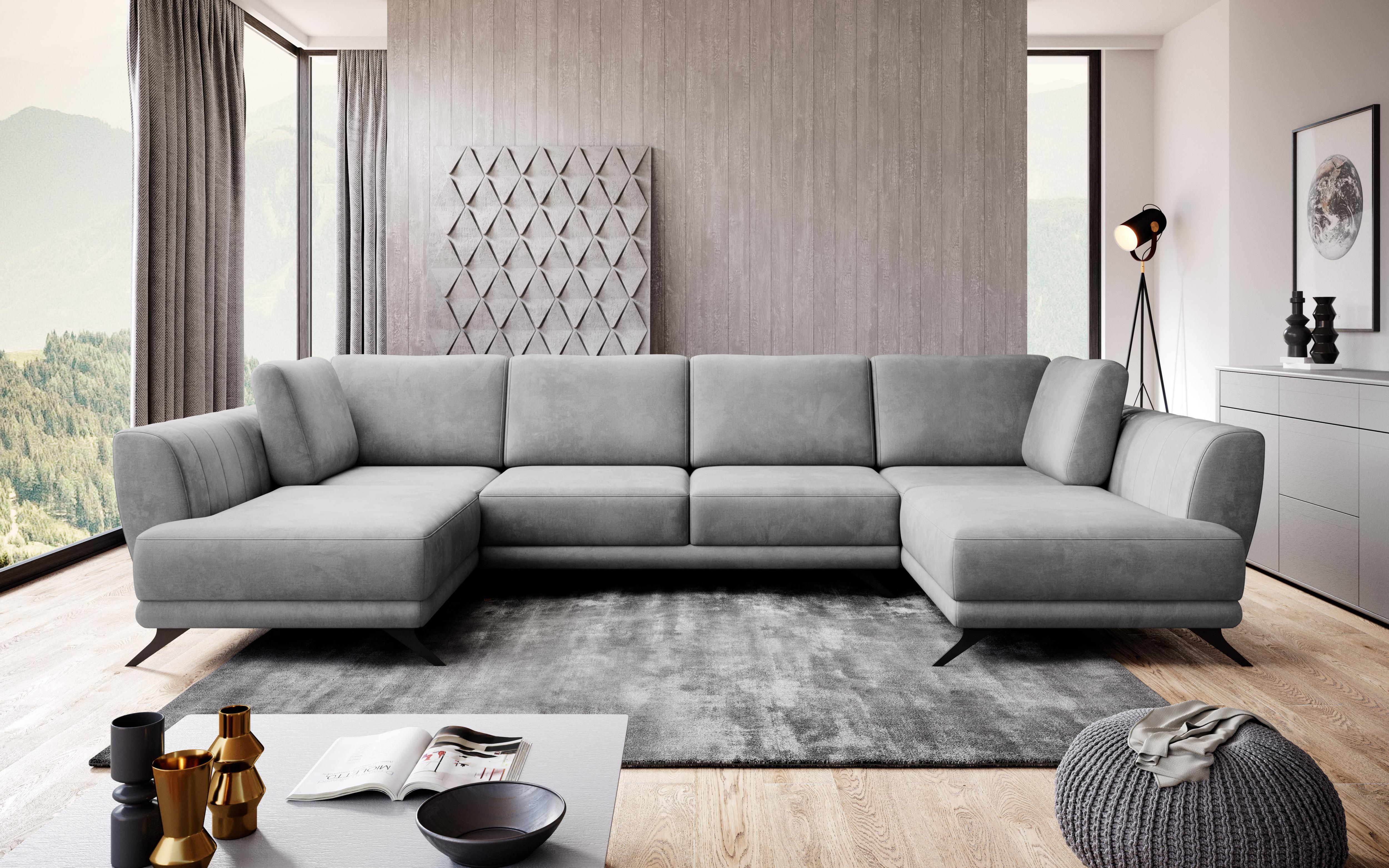 Canapé panoramique convertible LARGOS - Velours irrésistiblement douillet-Gris clair