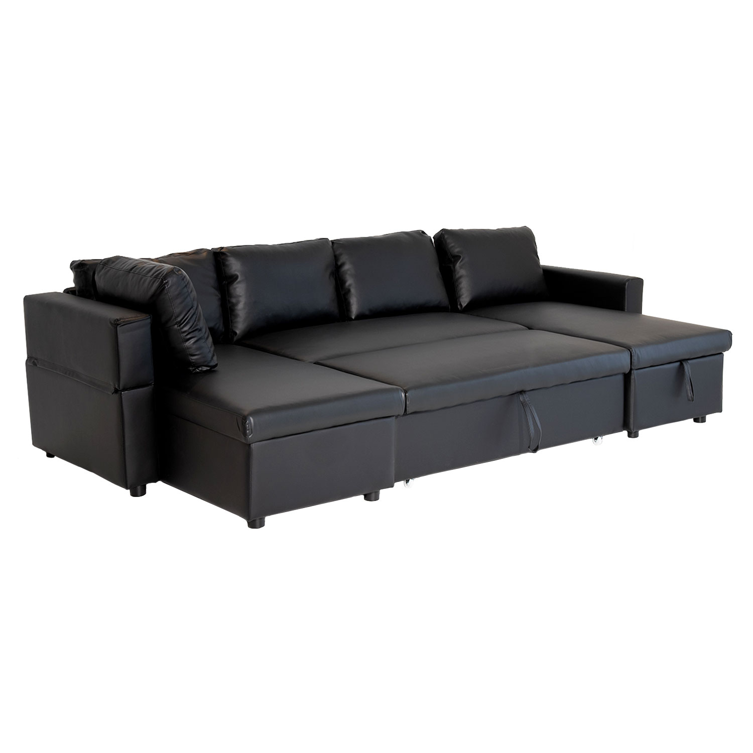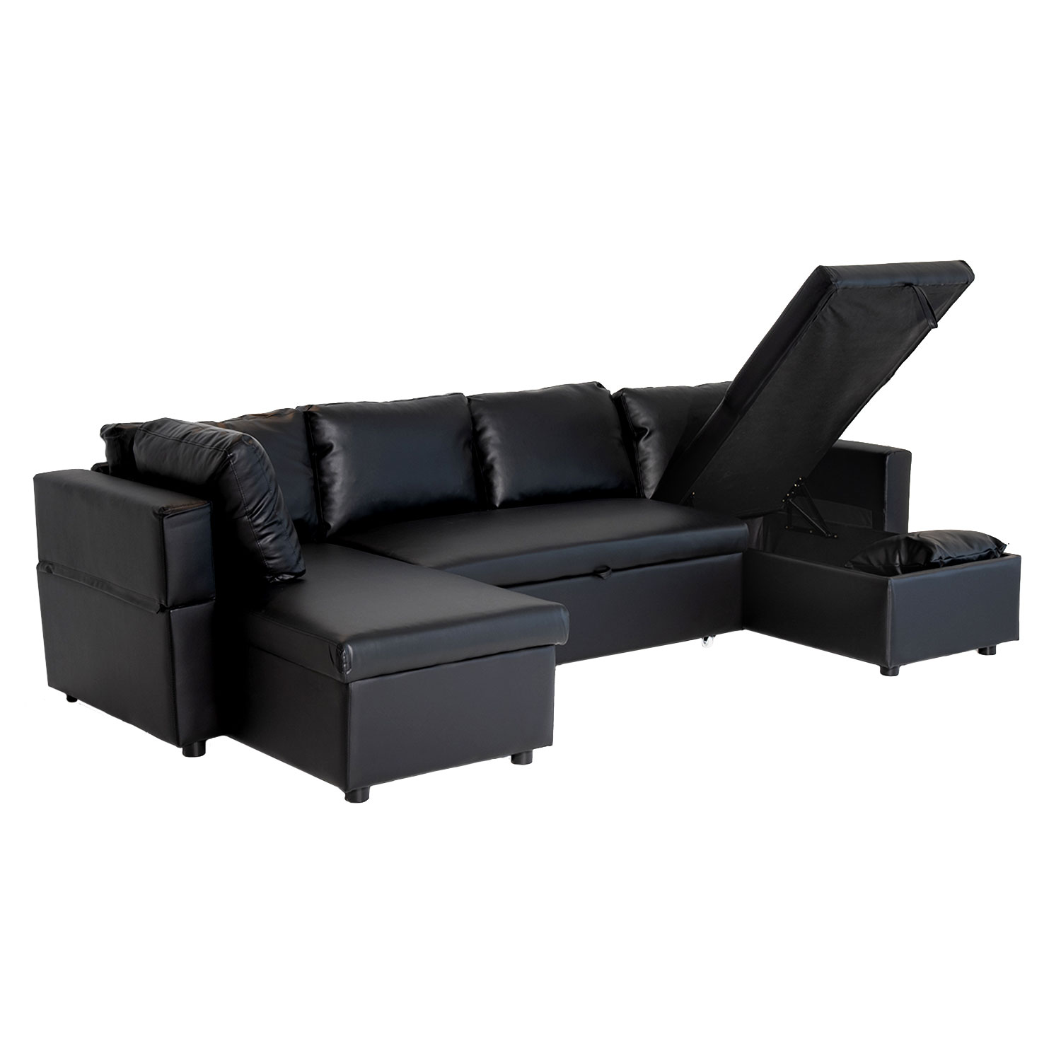 Canapé panoramique convertible simili SCOTT 4 places noir