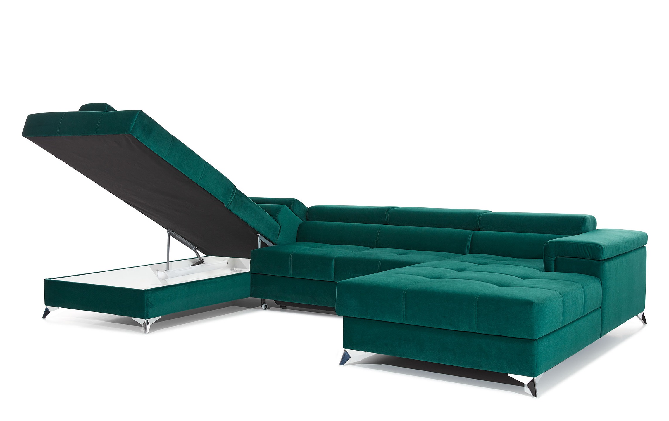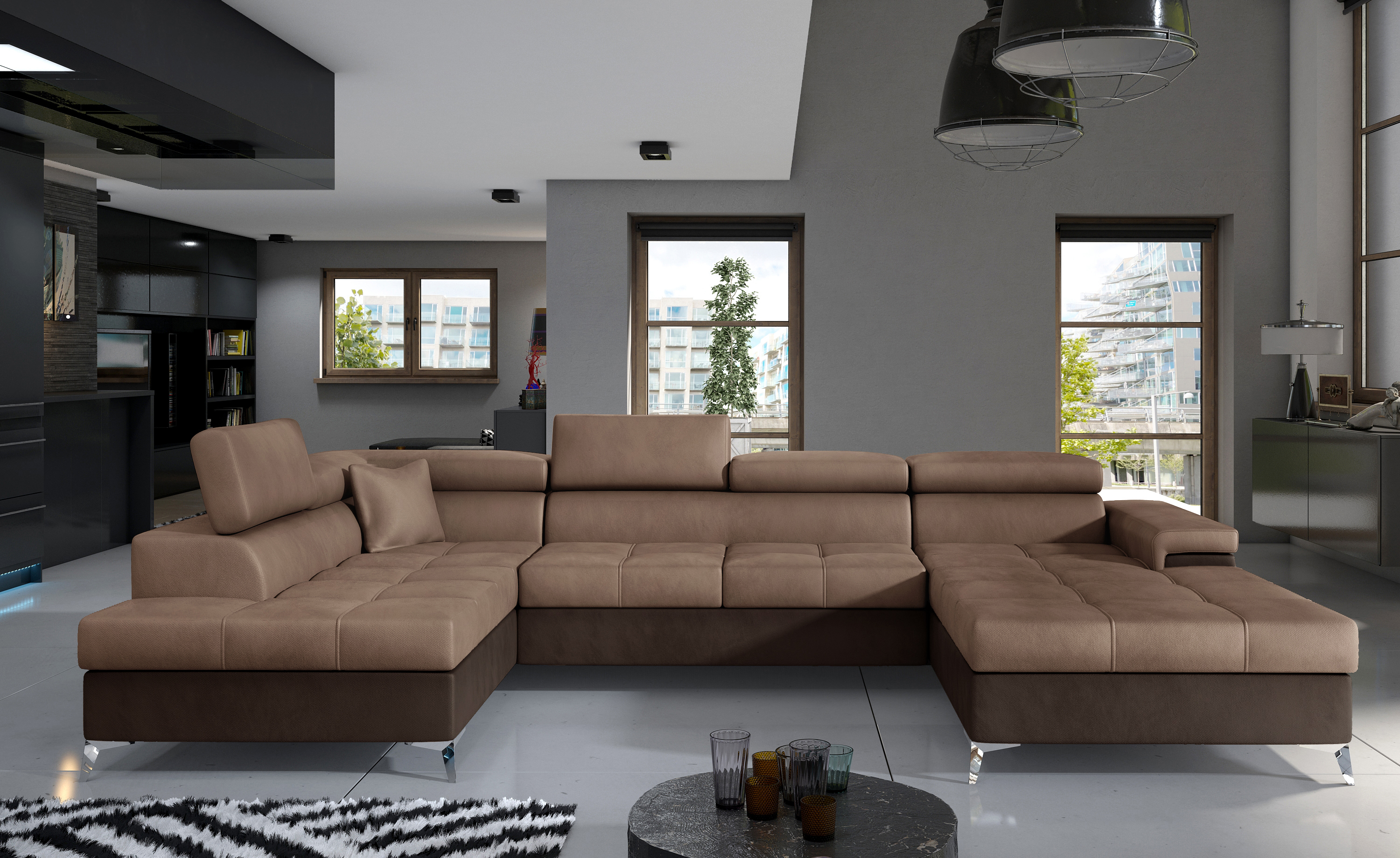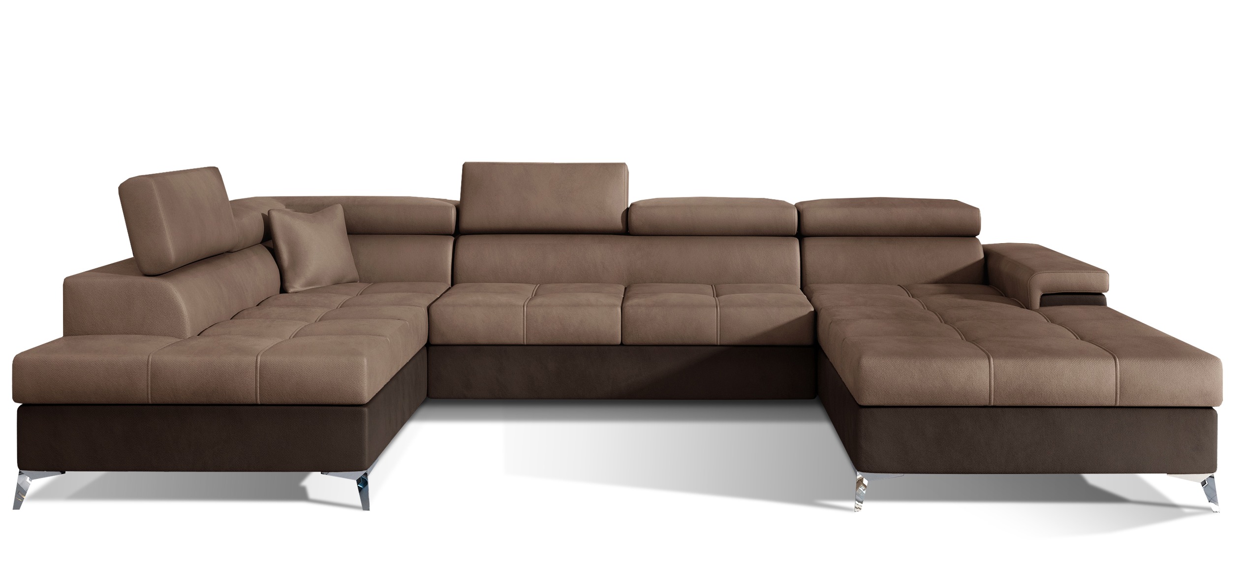 Le canapé d’angle en forme de U KUTTY transforme votre salon en un véritable havre de détente. Spacieux, modulable et conçu pour le confort absolu, il combine design moderne et fonctionnalité intelligente pour répondre à tous vos besoins quotidiens. Un espace généreux pour tous vos moments de vie Avec ses appuie-têtes réglables, ses assises profondes et ses deux poufs intégrés et moelleux, le KUTTY est la pièce centrale idéale pour partager des instants conviviaux en famille ou entre amis. Que ce soit pour une soirée télé ou un après-midi lecture, il accueille tout le monde avec style et confort. Un confort haute performance grâce à des matériaux premium Ce canapé panoramique est garni de mousse HR 30 kg/m³, une mousse innovante reconnue pour sa résilience et son accueil tout en douceur. Associée à des ressorts ondulés et un dossier rembourré en mousse HR 25 kg/m³, elle garantit une assise confortable et durable. Transformable en lit spacieux Le KUTTY se métamorphose en un grand couchage de 125x265 cm, parfait pour héberger vos invités. Le mécanisme de dépliage est fluide et facile à utiliser, vous assurant une transition rapide entre le salon et un espace nuit confortable. Design contemporain et finitions soignées Son style affirmé est sublimé par un revêtement en velours italien ultra doux, disponible dans plusieurs coloris et textures pour s’accorder à tous les intérieurs. Les pieds en métal chromé ajoutent une touche de modernité tout en permettant le passage d’un robot aspirateur grâce à leur hauteur de 9 cm. Caractéristiques techniques : Dimensions totales : L 337 x P 205 x H 88 cm Surface de couchage : 125 x 265 cm Méridienne avec dossier : L 100 x H 43 x P 205 cm Méridienne avec coffre de rangement : L 107 x H 43 x P 205 cm Hauteur totale : 88 cm - têtières baissées 72 cm ( 4 Appuie-têtes réglables : 4 positions ) Hauteur d’assise : 43 cm Profondeur d’assise : 60 cm Revêtement : Velours italien 100 % polyester – 425 g/m² – Anti-taches, résistant à l’abrasion, ignifuge Coloris : Large palette disponible Structure : Bois massif et panneaux de particules Garnissage : Assise : mousse HR 30 kg/m³ Dossier : mousse HR 25 kg/m³ Rembourrage : ressorts ondulés Pieds : Métal chromé – H 9 cm Fonctions : Lit + rangement + têtières ajustables + 2 poufs intégrés Poids total : 225 kg Garantie : 5 ans – Fabrication européenne Conditionnement : 3 colis 206x110x85 cm – 78 kg 150x85x100 cm – 69 kg 206x110x85 cm – 80 kg KUTTY – Le canapé d’angle panoramique qui marie élégance, bien-être et praticité Avec sa conception intelligente et son allure sophistiquée, le KUTTY devient la pièce maîtresse de votre salon, pensée pour durer et séduire. Option(s) sélectionnée(s) : - Couleur : Marron foncé/Marron clair - Coffre de rangement : à gauche