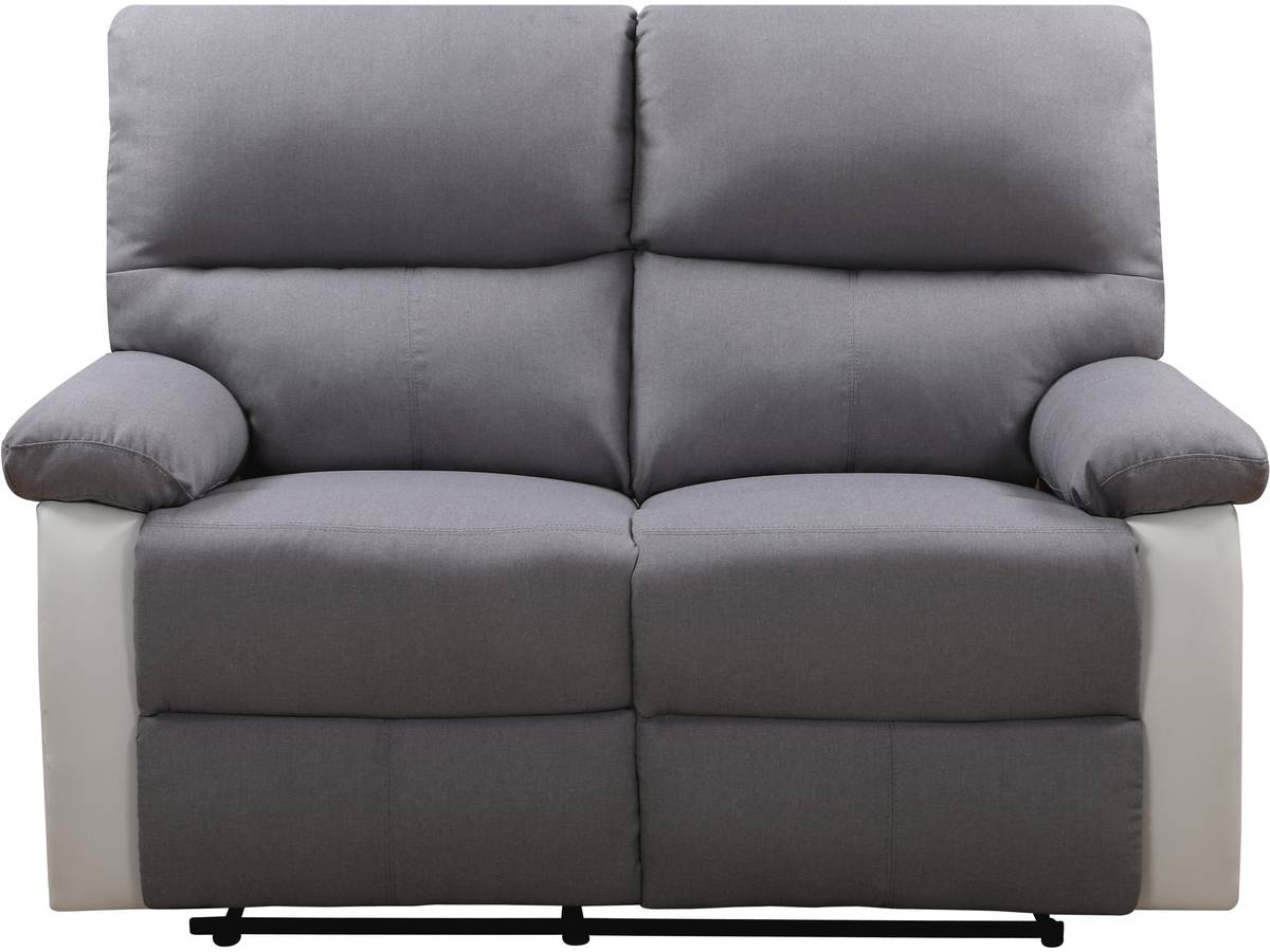 Fauteuil relax "Lincoln"Avec le fauteuil relax Lincoln, se relaxer est à portée de main ! Le fauteuil relax est un incontournable en matière de mobilier de salon. Il se révèle parfait pour lire un bouquin, s'installer devant un écran plat ou pour, tout simplement, se relaxer.Doté d'un rembourrage en mousse et en polyester d'une densité de 25 kg/m³, il vous offrira un confort apprécié et recherché et vous permettra de vous détendre tranquillement depuis votre salon, ou depuis n'importe quelle autre pièce de votre maison. Par ailleurs, une poignée située sur le côté de l'assise vous donnera la possibilité d'incliner manuellement le fauteuil et, ainsi, d'enclencher le mode "relax". Canapé relax 2 places "Lincoln" - Blanc / Gris clair - Dimensions : 147 x 89 x 103 cm - Revêtement en PVC et en tissu - Rembourrage mousse et polyester .Type: Relax