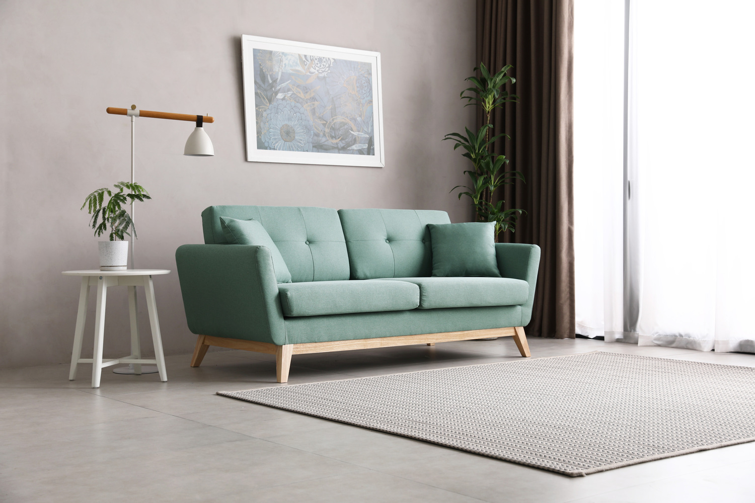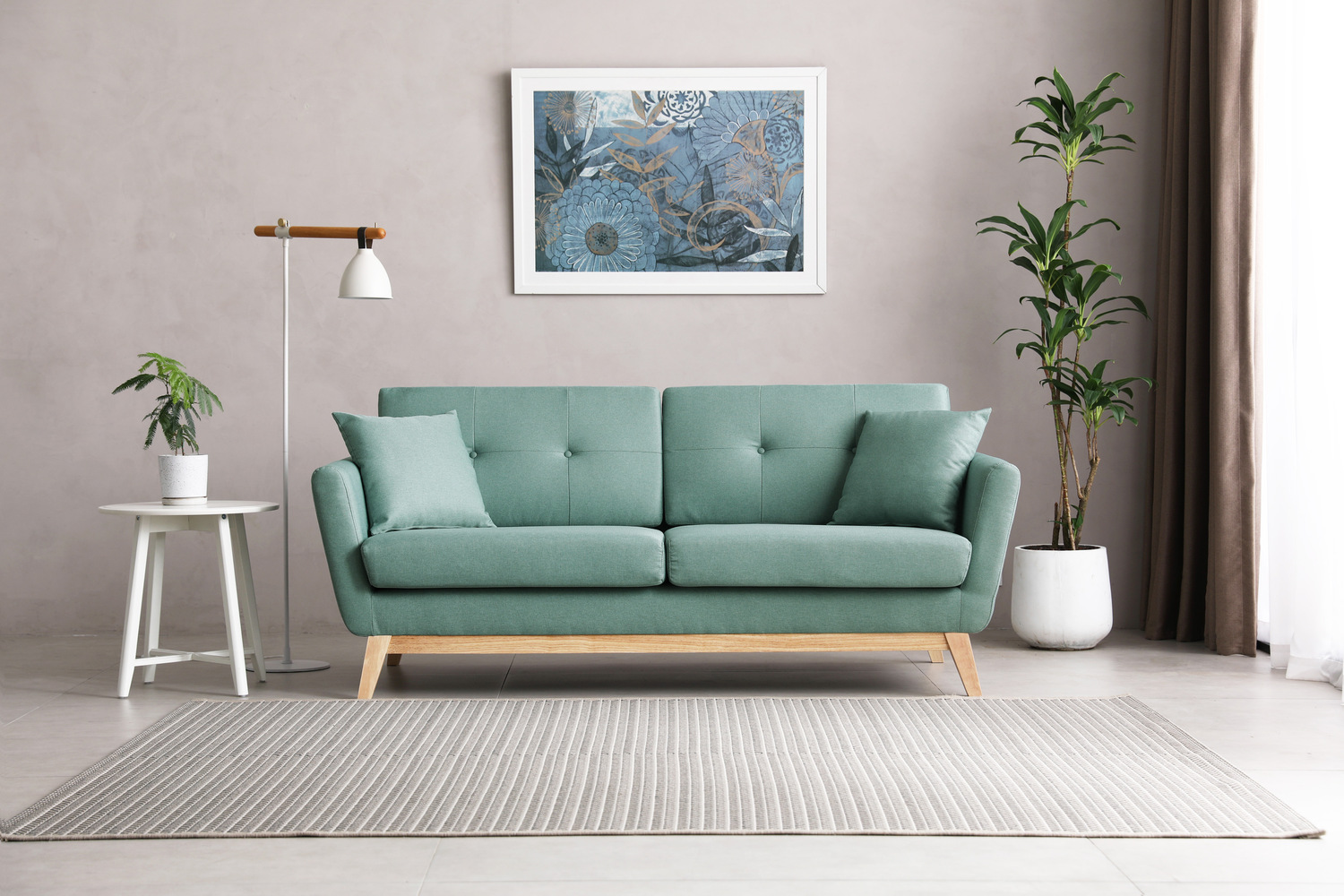 Canapé scandinave 3 places et 2 coussins vert d'eau HOGA