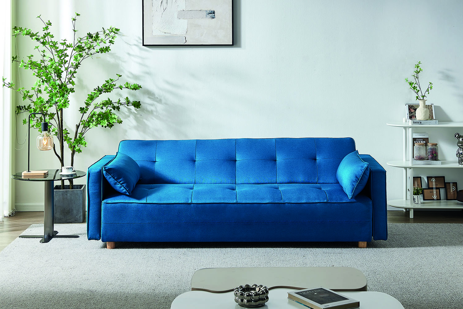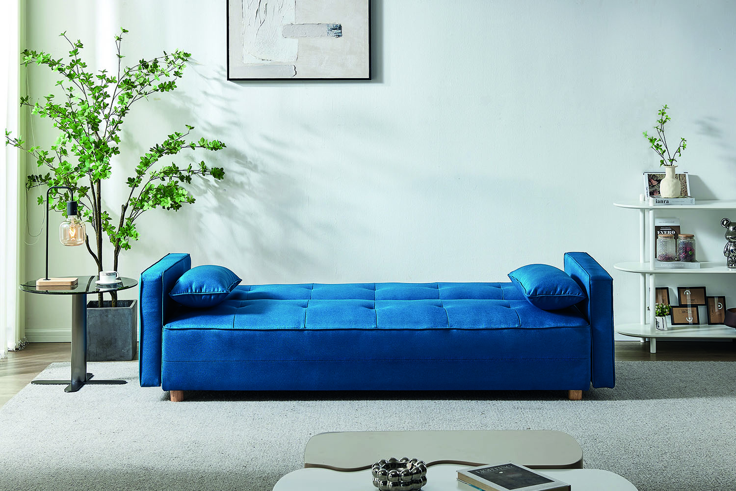Le canape convertible 3 places en tissu bleu canard est à la fois elegant et fonctionnel. Avec son design moderne et sa couleur attrayante, il apporte une touche de modernite à n'importe quel espace de vie.Grâce à sa fonction convertible, ce canape offre une solution pratique pour les espaces plus restreints ou pour accueillir des invites. Il se transforme facilement en un lit confortable, offrant ainsi un espace supplementaire pour dormir. Le mecanisme de conversion est simple à utiliser et vous permet de passer rapidement du mode canape au mode lit.