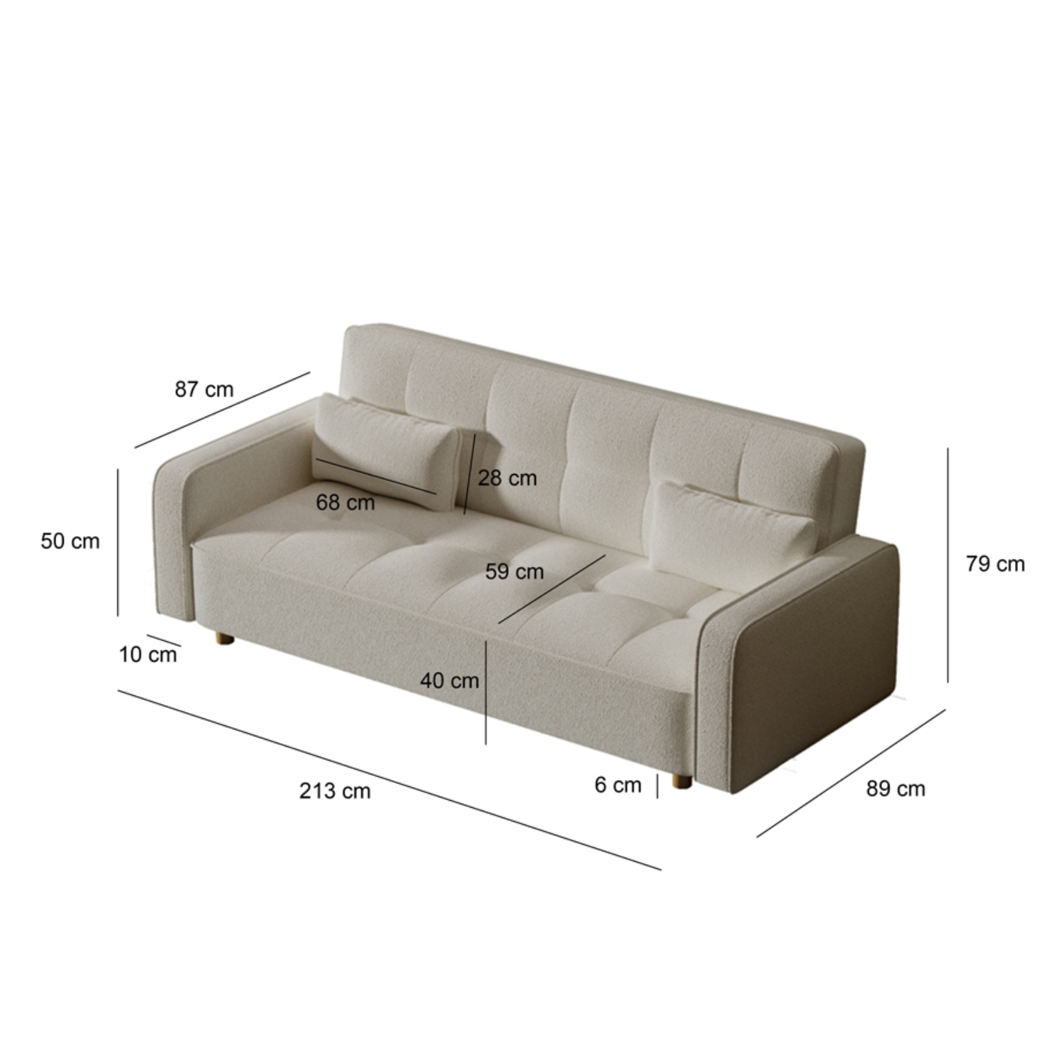• Total (l x P x h) : 213 x 89 x 79 cm