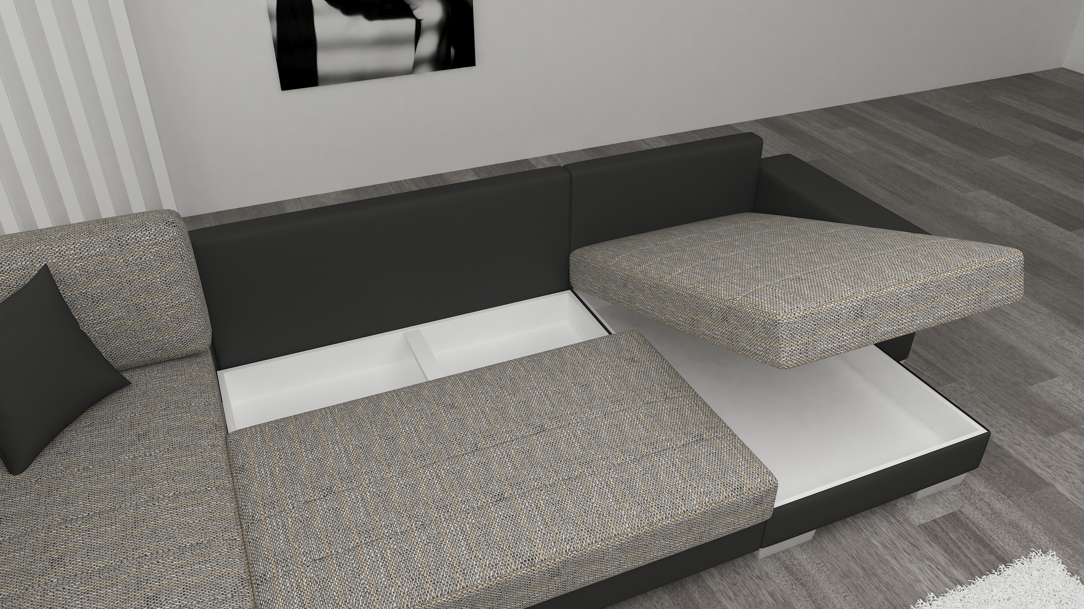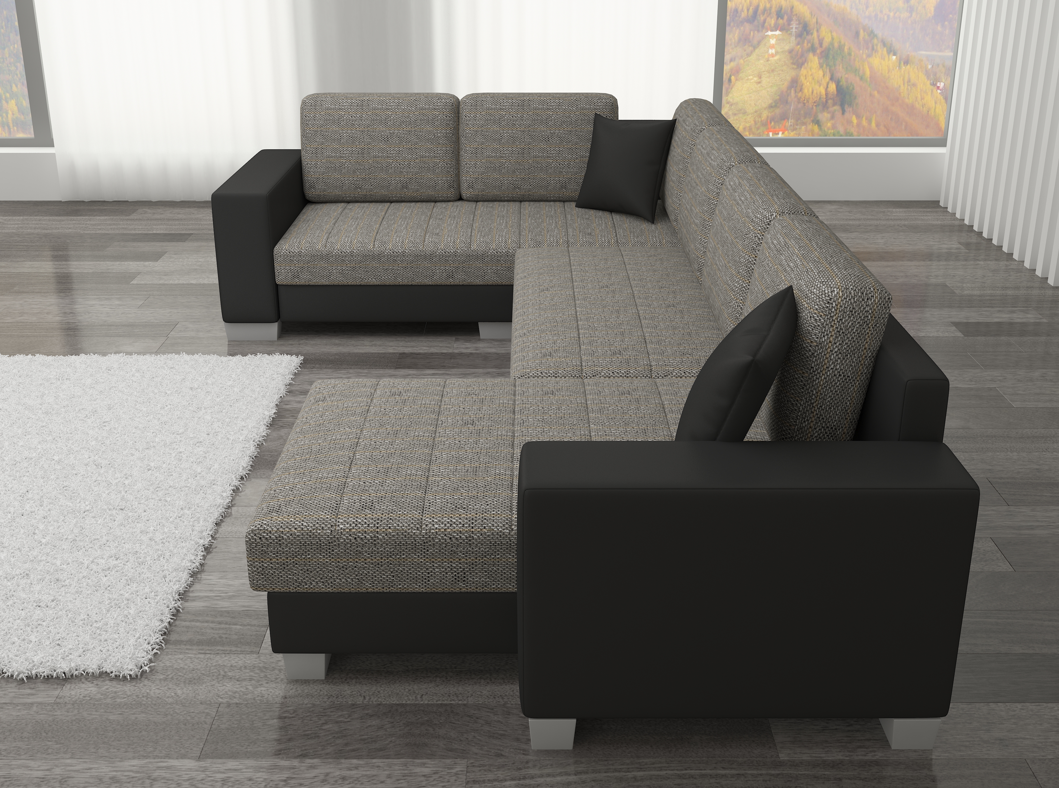 | Libellé | Canapé U convertible tissu gris chiné coffre de rangement à droite Marry 321cm |