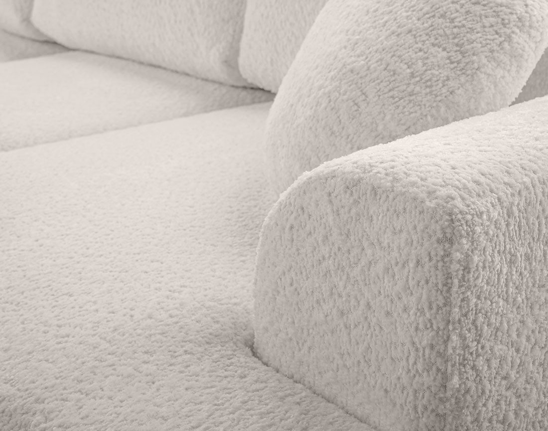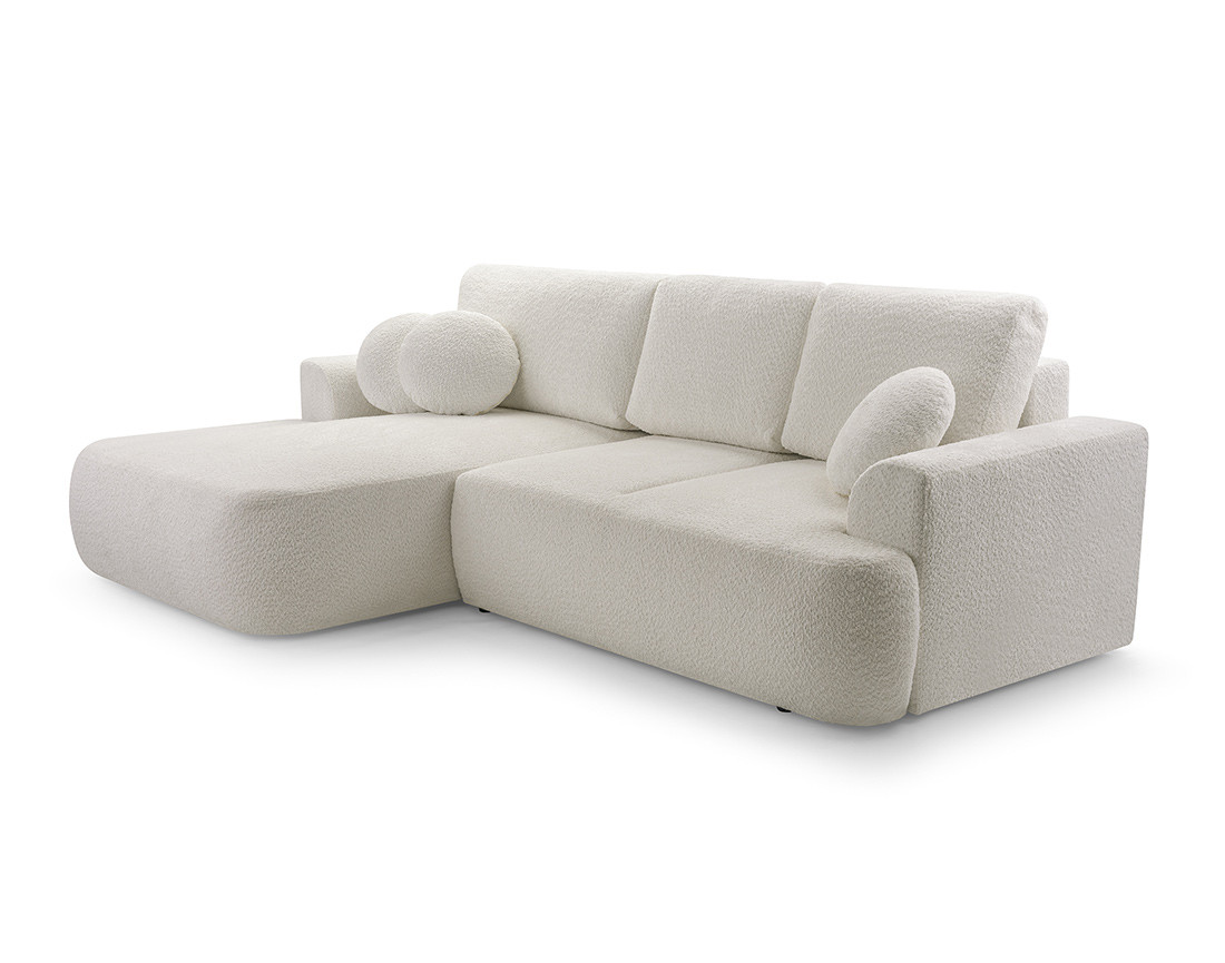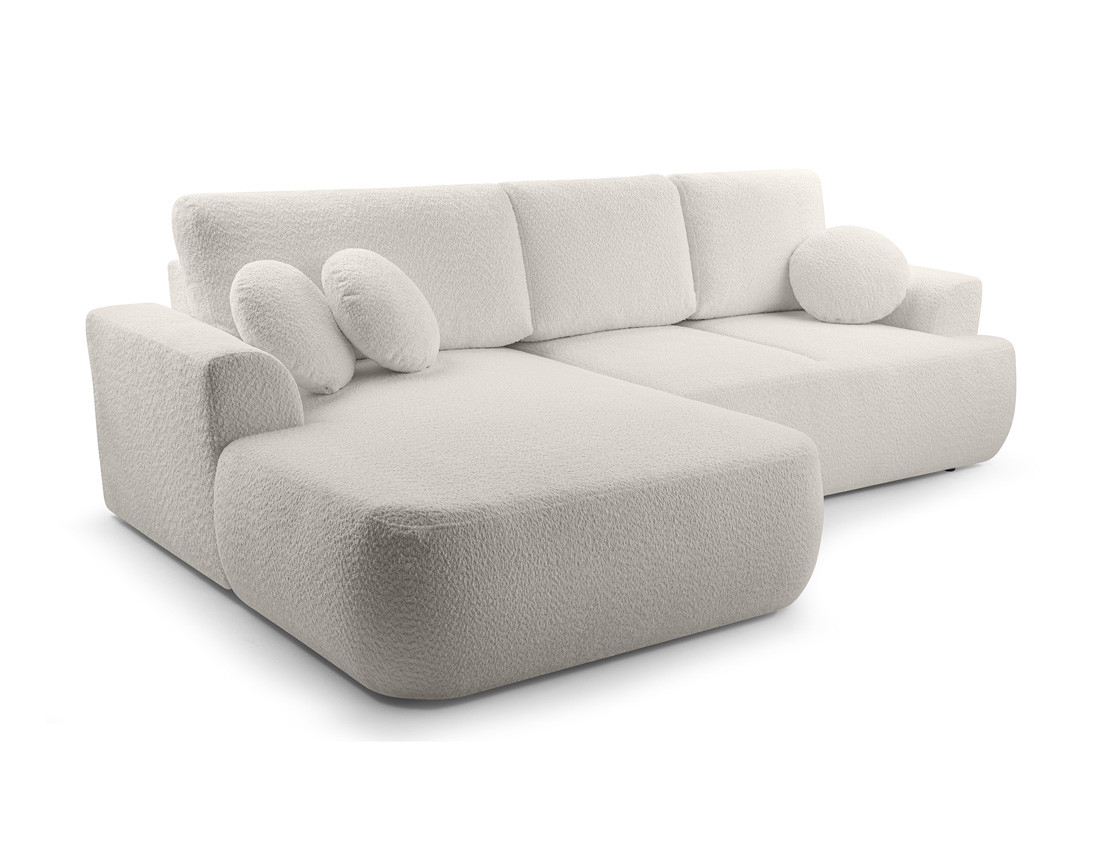 Le canapé d'angle gauche Candela est une pièce maîtresse qui est à la fois esthétique et pratique. Il peut recevoir jusqu’à 4 personnes, avec son assise confortable et son tissu bouclette extrêmement doux au toucher. Il est également livré avec des coussins ronds décoratifs assortis qui apportent une touche de confort supplémentaire en permettant de caler sa nuque, ses hanches ou le bas de son dos. Le tissu est facile à entretenir à l’aide d’un aspirateur ou d’un chiffon humide. Le canapé Candela est fabriqué en Europe, gage de qualité. Chaque détail est soigneusement pensé pour offrir un produit fini d'excellence.