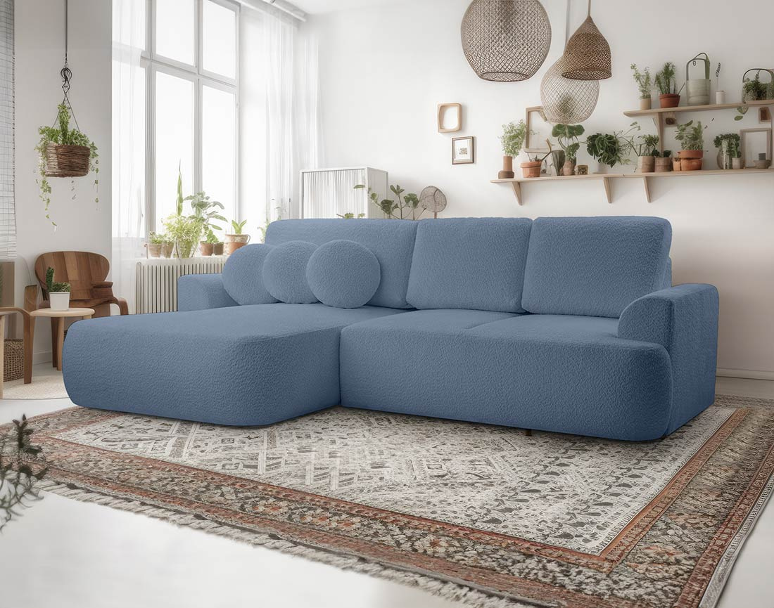Le canapé d'angle gauche Candela est une pièce maîtresse qui est à la fois esthétique et pratique. Il peut recevoir jusqu’à 4 personnes, avec son assise confortable et son tissu bouclette extrêmement doux au toucher. Il est également livré avec des coussins ronds décoratifs assortis qui apportent une touche de confort supplémentaire en permettant de caler sa nuque, ses hanches ou le bas de son dos. Le tissu est facile à entretenir à l’aide d’un aspirateur ou d’un chiffon humide. Le canapé Candela est fabriqué en Europe, gage de qualité. Chaque détail est soigneusement pensé pour offrir un produit fini d'excellence.