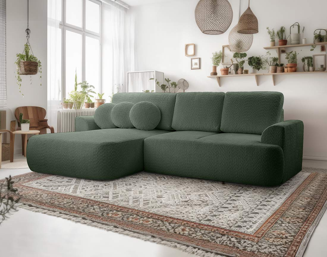 Le canapé d'angle gauche Candela est une pièce maîtresse qui est à la fois esthétique et pratique. Il peut recevoir jusqu’à 4 personnes, avec son assise confortable et son tissu bouclette extrêmement doux au toucher. Il est également livré avec des coussins ronds décoratifs assortis qui apportent une touche de confort supplémentaire en permettant de caler sa nuque, ses hanches ou le bas de son dos. Le tissu est facile à entretenir à l’aide d’un aspirateur ou d’un chiffon humide. Le canapé Candela est fabriqué en Europe, gage de qualité. Chaque détail est soigneusement pensé pour offrir un produit fini d'excellence.