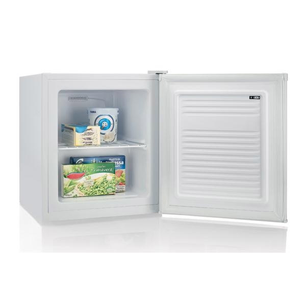 Candy Comfort CFU 050 E. Capacité net du congélateur: 34 L, Classe climatique: N-ST, Capacité de congélation: 2 kg/24h, Autonomie en cas de panne de courant: 12 h, Niveau sonore: 41 dB, Nombre d'étoiles (indique les possibilités de conservation): 4*. Emplacement charnière de porte: Droite. Consommation annuelle d'énergie: 150 kWh. Couleur du produit: Blanc