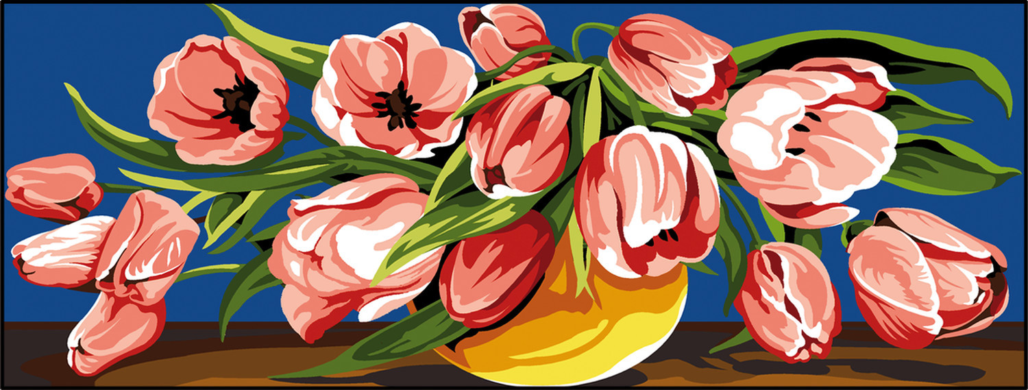 Libellé Canevas antique avec débordement de tulipes - 25x60cm