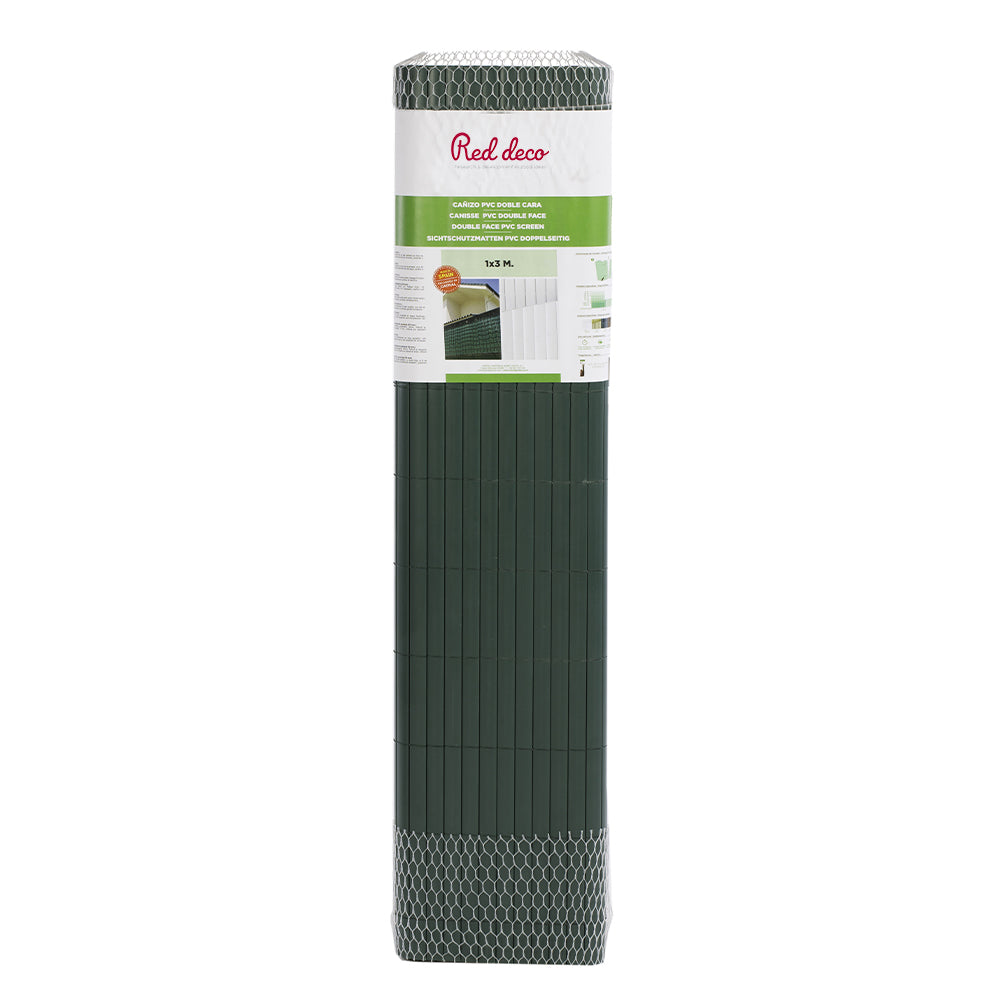 - CARACTÉRISTIQUES : type : canisse double face; dimensions : H.1,5 m x L.3 m; composition : 100% PVC; coloris : vert; traitement anti-UV; structure anti chocs; matière fil : polyester imputrescible; intimité élevée; accessoires de fixation vendus séparément; lieu de fabrication : Espagne.