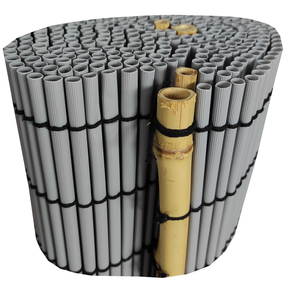 | Libellé | Canisse PVC Ovale Gris| Composite PVC 1200g/m2| Tiges Bambou Naturel| Occultation 80%| Dimensions 1X3 M |